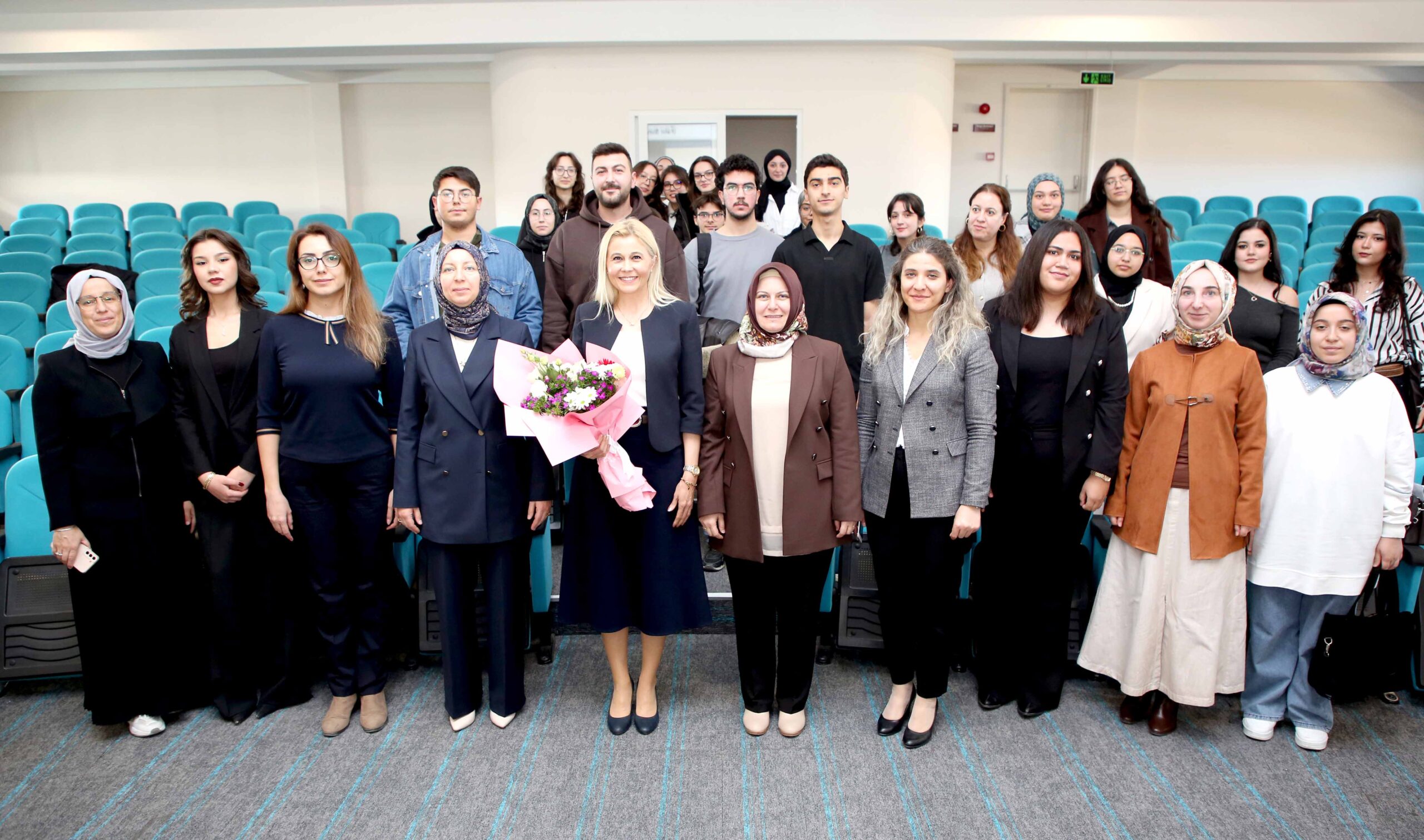 İlahiyat Fakültesi Konferans Salonunda Hukuk Fakültesi Dr. Öğretim Üyesi Mürşide Şimşek’in moderatörlüğünde Afyonkarahisar Cumhuriyet Savcısı Gülşen Sezer’in konuşmacı olarak yer aldığı söyleşiye; Kadın ve Aile Araştırmaları Uygulama ve Araştırma Merkezi Doç. Dr. Letife Özdemir, öğretim elamanları ile Hukuk Fakültesi ve Psikoloji Bölümü öğrencileri katıldı.