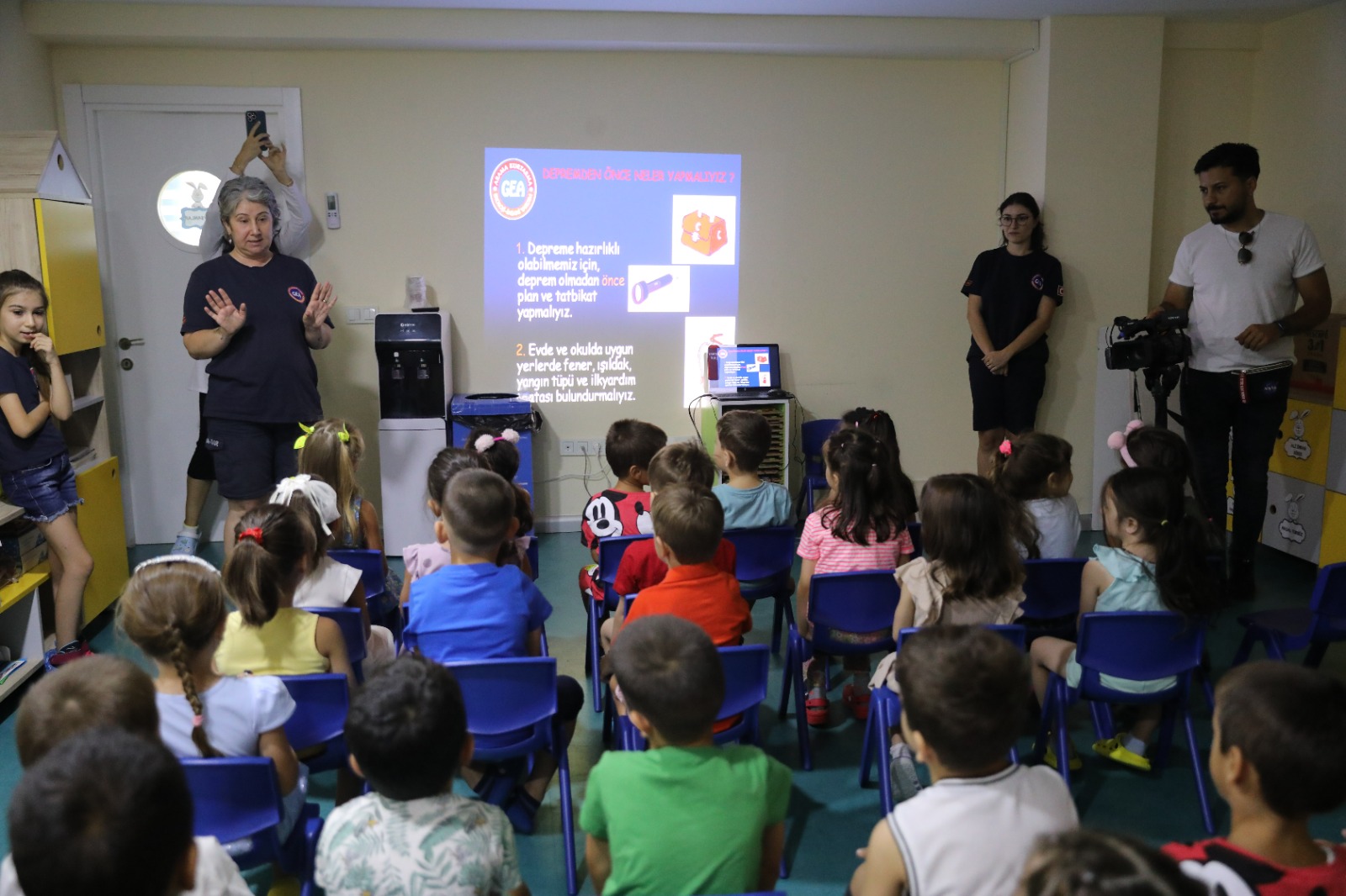 Antalya Büyükşehir Belediyesi’ne bağlı kreşlerde, minik öğrencilere deprem eğitimi verildi. Eğitimle çocukların depremlere karşı hazırlıklı olması ve bilinçlenmesi amaçlanıyor.