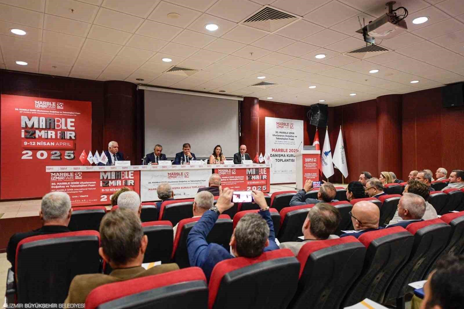 İzmir Büyükşehir Belediye Başkanı Dr. Cemil Tugay, doğal taş sektöründe dünyanın en önemli buluşmalarından 30. MARBLE İZMİR-Uluslararası Doğaltaş ve Teknolojileri Fuarı öncesinde sektör temsilcileriyle bir araya geldi. 9-12 Nisan 2025 tarihlerinde yapılacak fuar öncesinde MARBLE İZMİR 2025 Danışma Kurulu Toplantısı’nda sektörün isteklerini dinleyen Başkan Dr. Cemil Tugay, “Benim üzerime ne düşüyorsa yapmaya hazırım ama o da Danışma Kuruluyla beraber olgunlaşacak” dedi.