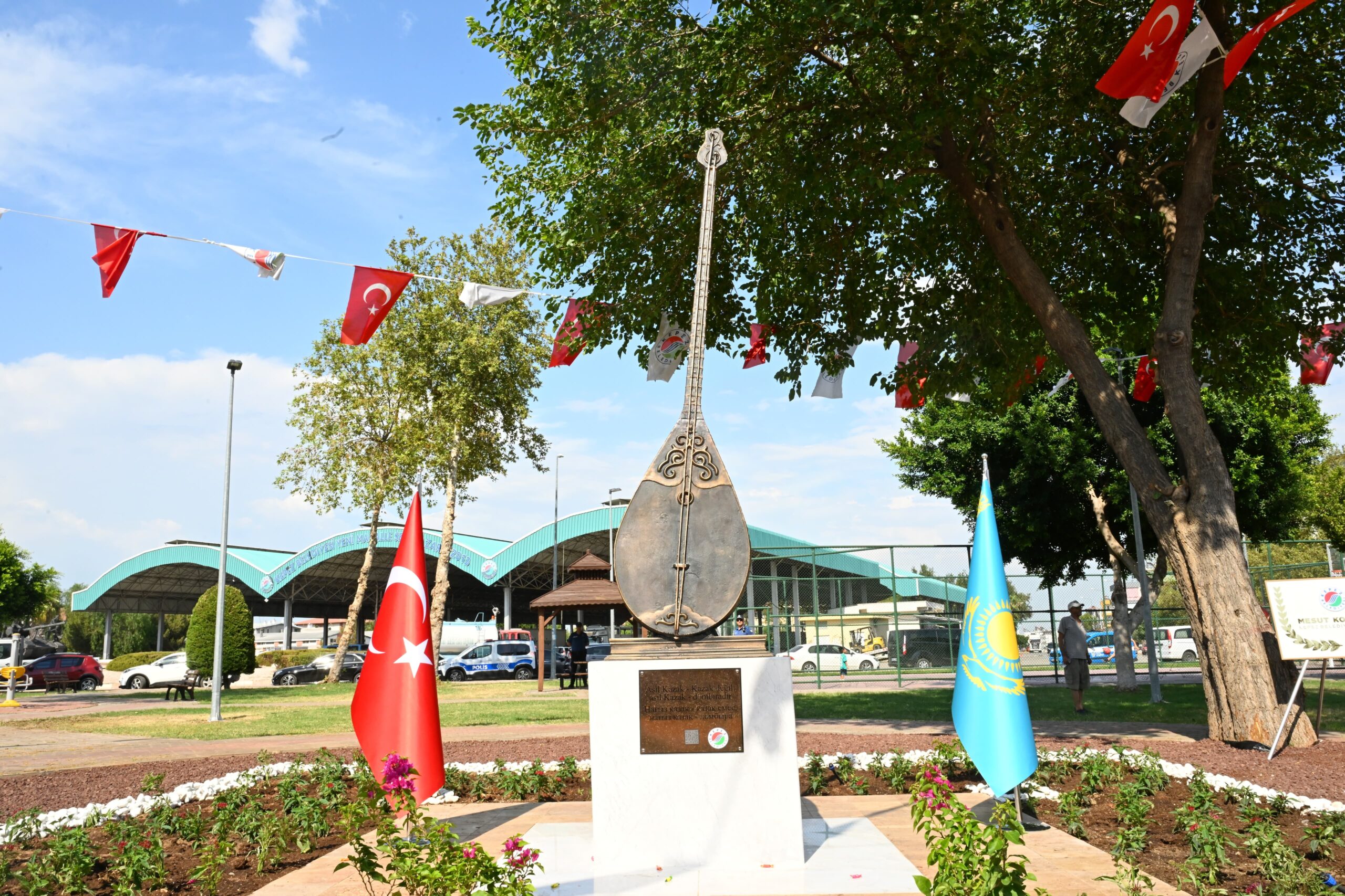 Kazakistan Cumhuriyeti’nin Milli Dombra Günü’nde, Türk halklarının geleneksel çalgısı olan Dombra’nın anıtı Antalya Kepez ilçesinde bulunan Jambıl Jabayev parkına tören ile yerleştirildi. Antalya Valisi Hulusi Şahin, “Bugün kardeşlerimizle tekrar buluşmanın mutluluğunu yaşıyoruz. Güçleneceğiz, büyüyeceğiz, dünyaya tekrar barış ve adaleti getireceğiz” dedi.