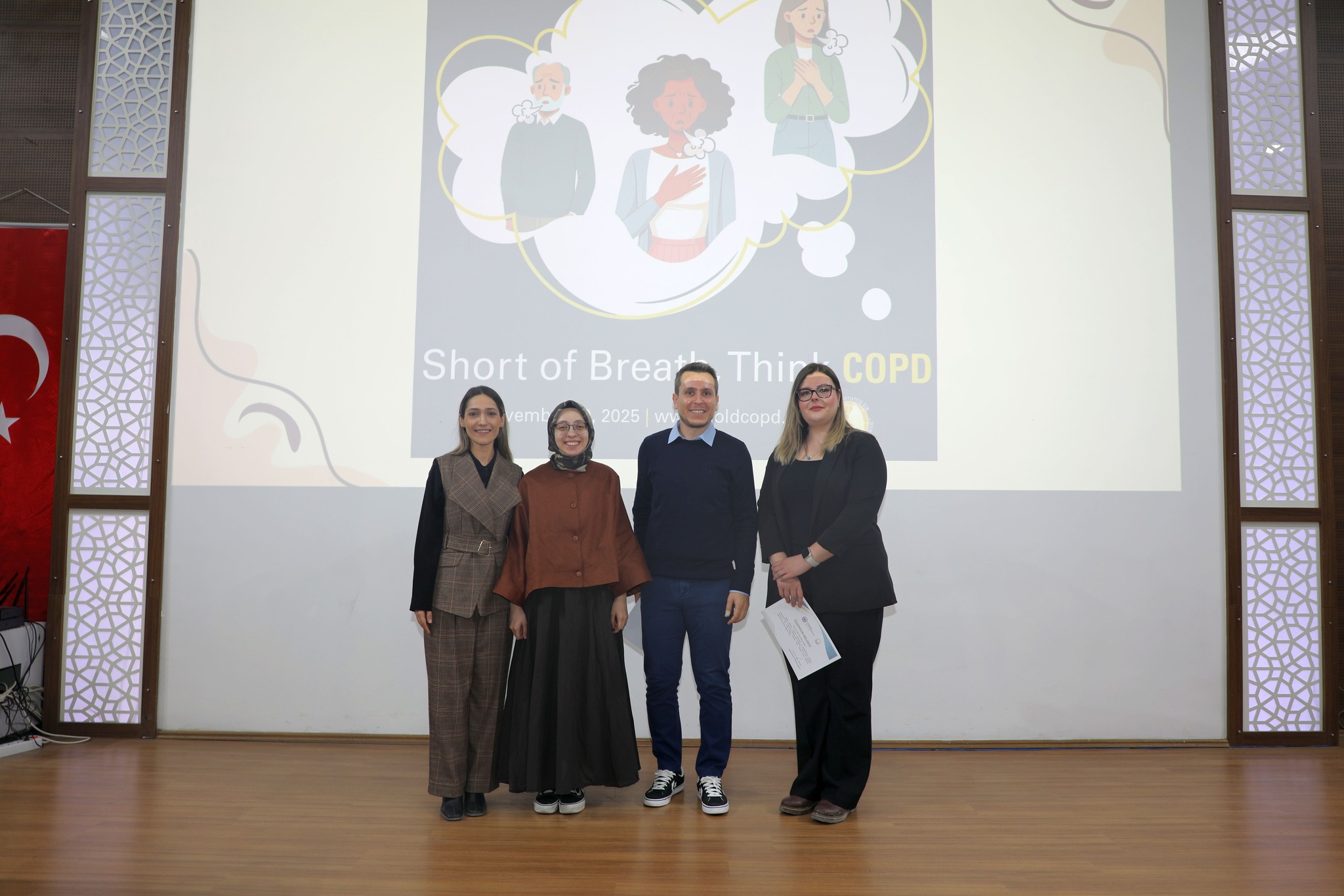 SBF Kardiyopulmoner Fizyoterapi Ana Bilim Dalından Arş. Gör. Beyza Nur Düzcan, KOAH yönetiminde önemli bir yer tutan solunum egzersizlerini uygulamalı örneklerle göstererek, günlük yaşamda uygulanabilecek etkili teknikleri aktardı. AFSÜ Hastanesi Başhekimi Doç. Dr. Aydın Balcı da detaylı sunumunda, KOAH’ın güncel tanı yöntemleri, tedavi yaklaşımları ve multidisipliner yönetimin önemi üzerine ayrıntılı bilgiler paylaşarak vaka örnekleriyle AFSÜ Hastanesinin bu alandaki hizmetlerini vurguladı. Etkinliğin son konuşmacısı, Yeşilay Derneği Afyonkarahisar Şubesinden Psikolog Hikmet Mengi oldu. Bağımlılıkla mücadele konusunda farkındalık yaratmayı amaçlayan sunumunda Psikolog Mengi, sigaranın KOAH üzerindeki yıkıcı etkilerini, bırakma süreçlerini ve destek mekanizmalarını ele aldı. Etkinlik, konuşmacılara belge takdimi ve anı fotoğrafı çekimi ile sona erdi.
