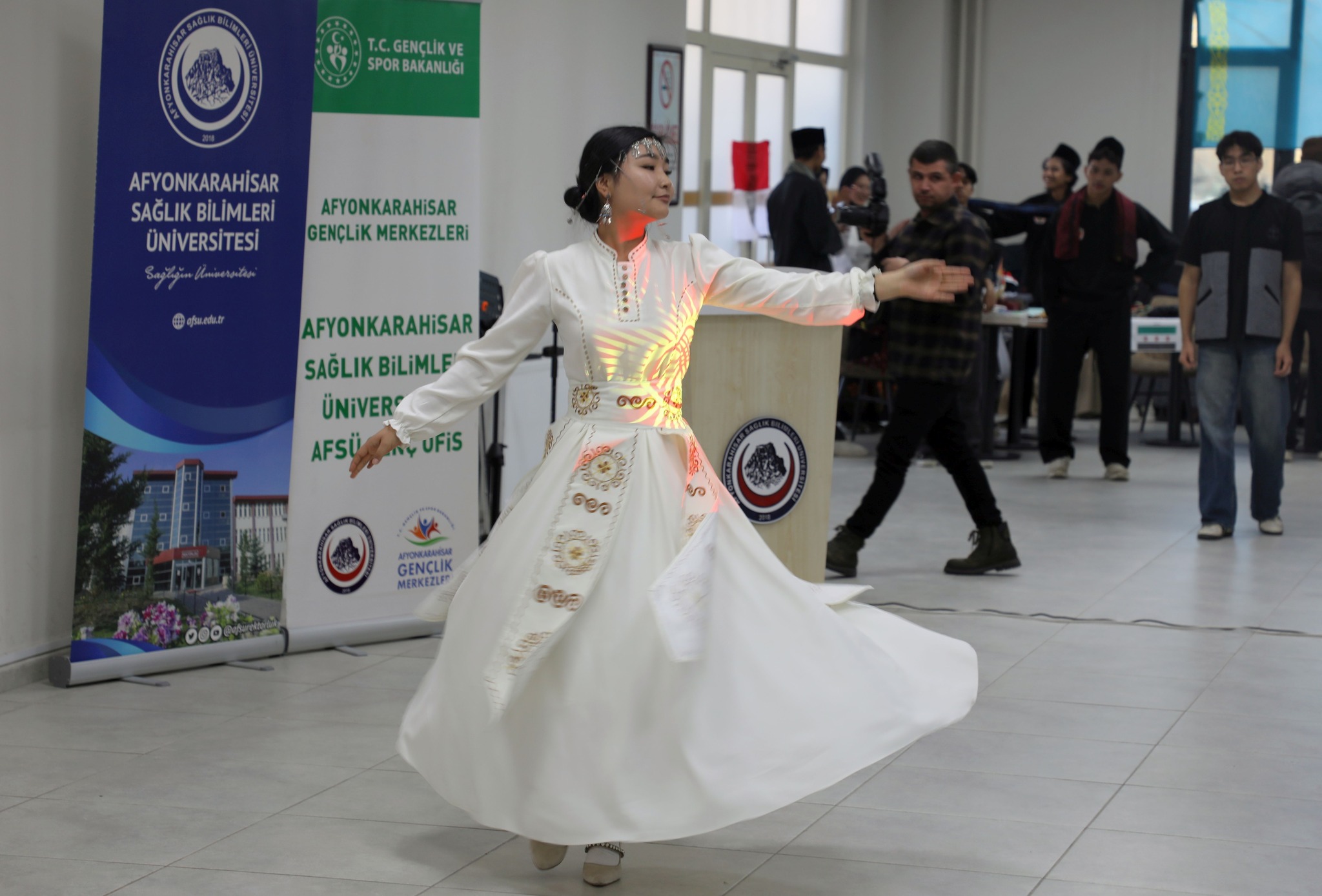 Afyon Kocatepe Üniversitesi ve AFSÜ’de eğitim gören uluslararası öğrencilerin danslarından geleneksel kıyafetlerine, müziklerinden yöresel lezzetlerine kadar pek çok kültürel unsurun sergilendiği etkinlikte, AFSÜ Rektörü Prof. Dr. Adem Aslan, Rektör Yardımcıları, Afyonkarahisar Gençlik ve Spor İl Müdürü Nedim Aslan ile Gençlik ve Spor Müdürlüğü yöneticileri, Afyonkarahisar Çalışma ve İş Kurumu Müdürü Ahmet Karakaya katılımcıların heyecanını paylaştı.