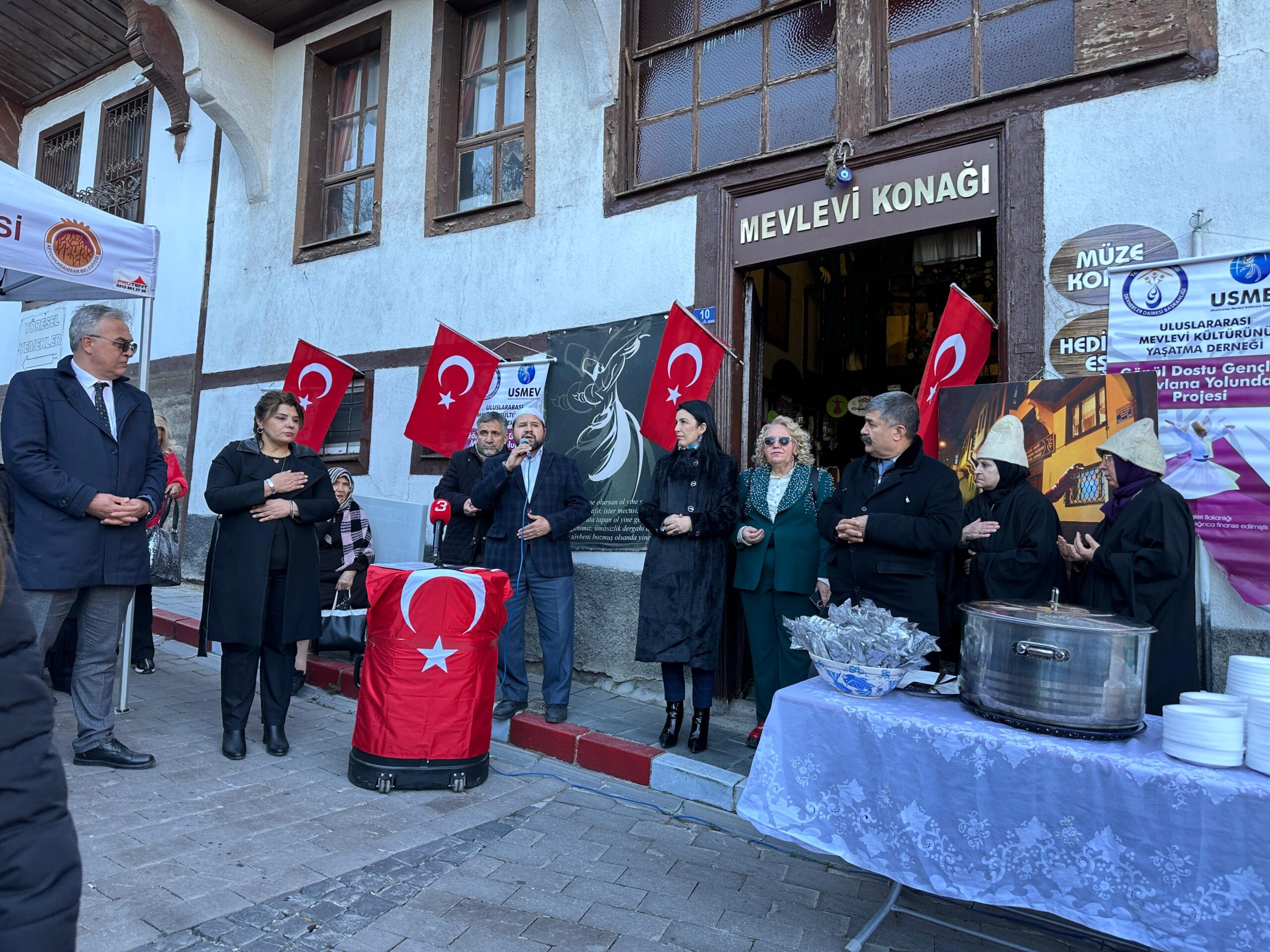 Mevlevi Camii yanında bulunan Uluslararası Mevlevi Kültürünü Yaşatma Derneği önünde gerçekleştirilen programda konuşan Dernek Başkanı Hacer Aran, Hz. Mevlana’nın sevgi ve muhabbet anlayışına dikkat çekerek, “Hz. Mevlana’nın dediği gibi sevgi ve muhabbet bütün canlılara lazımdır. Herkesin bu muhabbetle birleşip bir araya gelmeye ihtiyacı vardır” dedi.