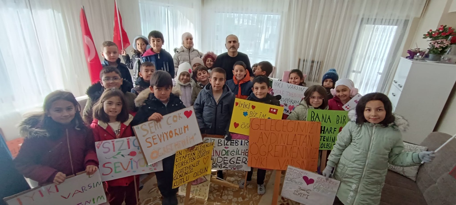 Öğrenciler, öğretmenlerine olan sevgilerini ve minnettarlıklarını ifade etmek için hazırladıkları sürprizle hem onu hem de kendilerini çok mutlu ettiler. Kutlama, öğrencilerin el emeğiyle hazırladığı rengârenk kartlar, birbirinden güzel resimler ve güzel sözler içeren pankartlara yazılmış “İyi ki varsınız Öğretmenim!” yazısı ve öğrencilerin coşkulu tavırları, Yakup Gülenç öğretmene olan sevgilerini adeta bir sanat eseri gibi ortaya koydu.