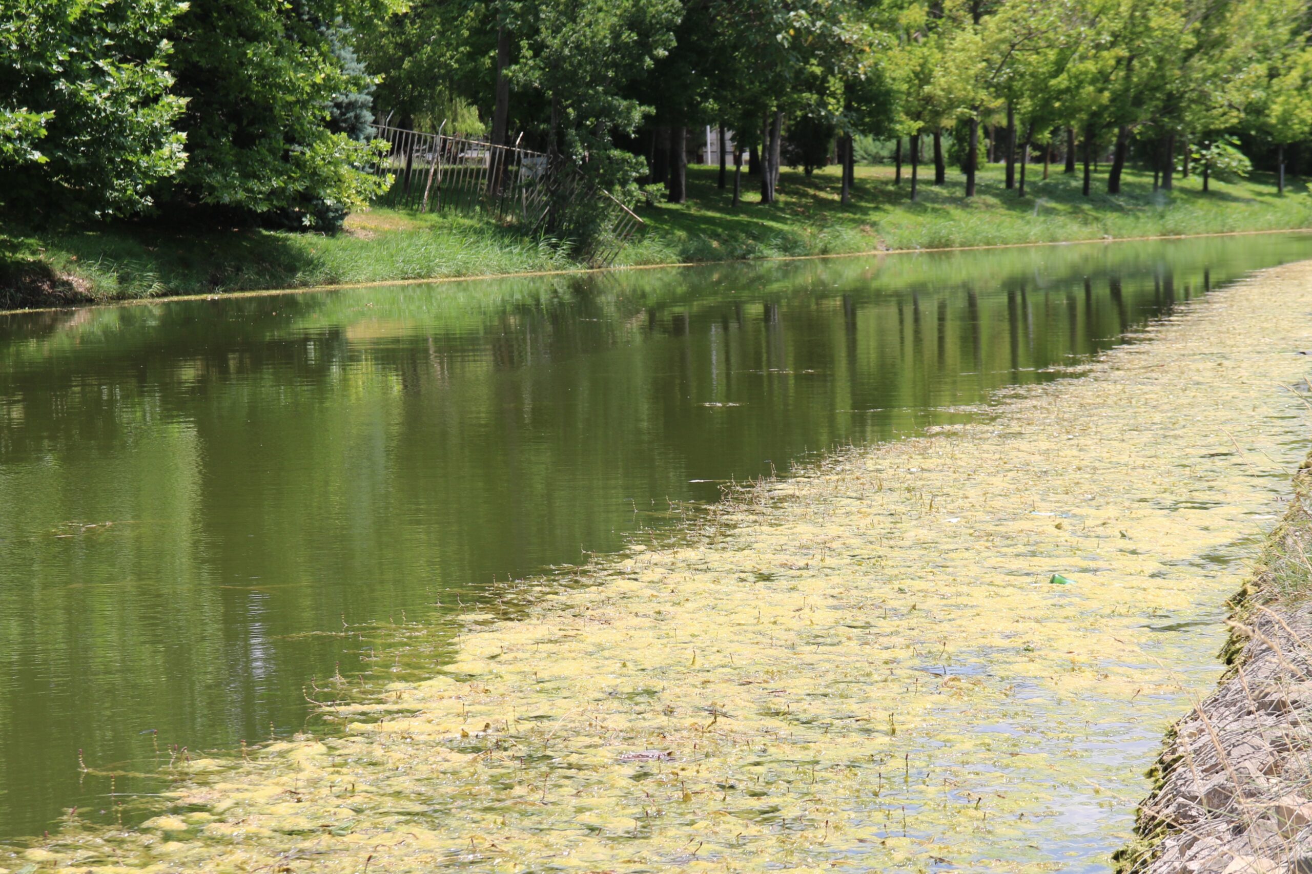 Eskişehir’de Porsuk Çayı’nın bazı bölümlerinde su akış hızının azalmasından dolayı suyun yüzeyinde yosun tabakası oluştuğu görüldü.