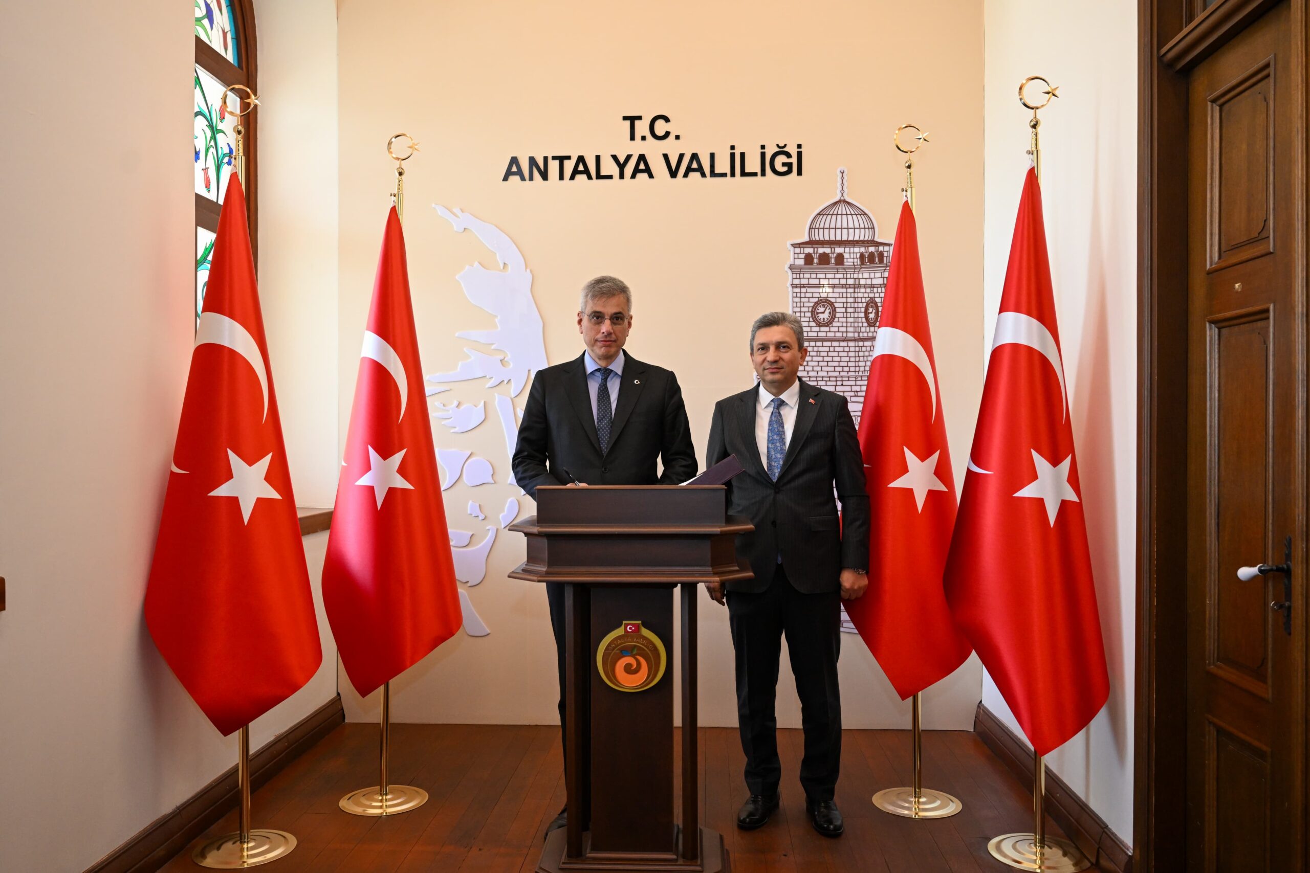 Valilik Şeref Defteri’ni imzalayan Sağlık Bakanı Prof. Dr. Kemal Memişoğlu daha sonra Vali Hulusi Şahin ile Antalya’daki sağlık hizmetlerinin durumu ve yapılan çalışmalar hakkında değerlendirmelerde bulundu.