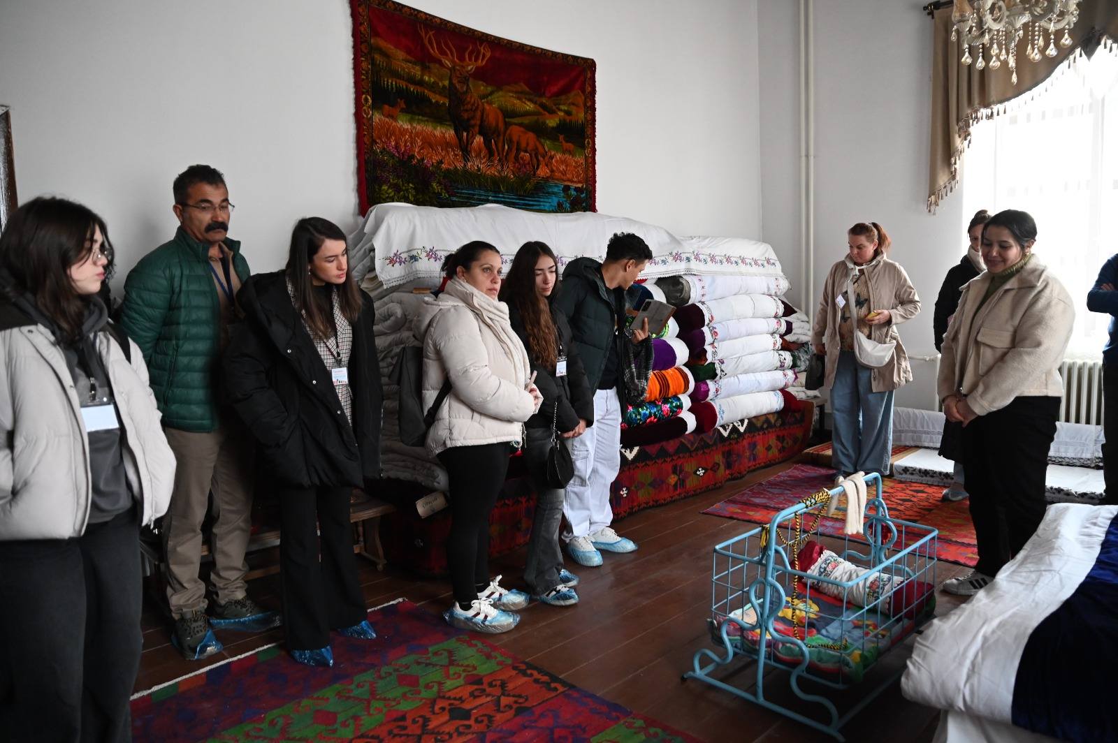 Saya odasında geleneksel saya kıyafetini giyen misafirler, kültür evinde yer alan yöresel eşyaları ve tarihî dokuyu yakından inceledi. Proje ekibi, ziyaret boyunca gösterilen ilgi ve misafirperverlikleri için belediye ekiplerimize teşekkür etti.