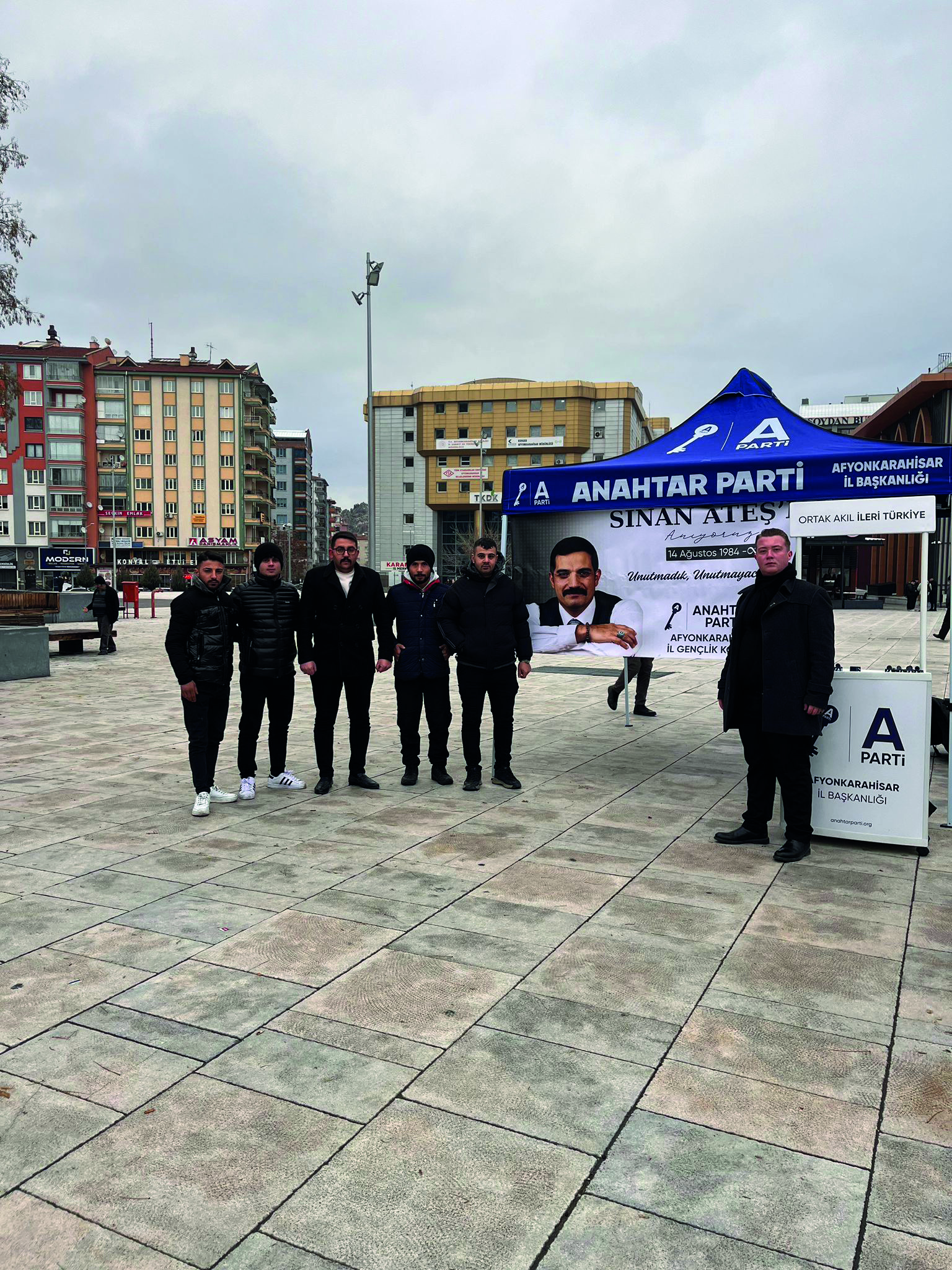 Anahtar Parti Afyonkarahisar İl Başkanlığı’ndan yapılan açıklamada şu ifadelere yer verildi: “Hain bir saldırı sonucu hayatını kaybeden merhum Sinan Ateş’i rahmetle, saygıyla ve özlemle anıyoruz. Sinan Ateş, bu ülkenin gençlerine ilmiyle, duruşuyla ve mücadelesiyle örnek olmuş bir isimdir. Onu unutmadık, unutturmayacağız. Bizler inanıyoruz ki; aradan uzun yıllar geçmesine rağmen aydınlatılamayan Muhsin Yazıcıoğlu dosyasında olduğu gibi, Sinan Ateş dosyasında da halen cevaplanmamış sorular, giderilmemiş şüpheler bulunmaktadır. Bu belirsizlikler toplumun vicdanını yaralamakta; adalet beklentisini her geçen gün daha da büyütmektedir. Anahtar Parti olarak; her iki dosyanın da sonuna kadar takipçisi olacağımız kamuoyuna açıkça ilan ediyoruz. Adalet talebi zaman aşımına uğramaz, vicdan susturulamaz. Sinan Ateş’in adı; dualarımızda, hafızamızda ve yüreğimizde yaşamaya devam edecektir. Anahtar Parti olarak; her türlü şiddetin karşısında, hukukun ve adaletin yanında durmaya; karanlıkta kalan hiçbir gerçeğin örtbas edilmemesi için mücadelemizi sürdürmeye kararlılıkla devam edeceğimizi kamuoyuna saygıyla duyururuz.”