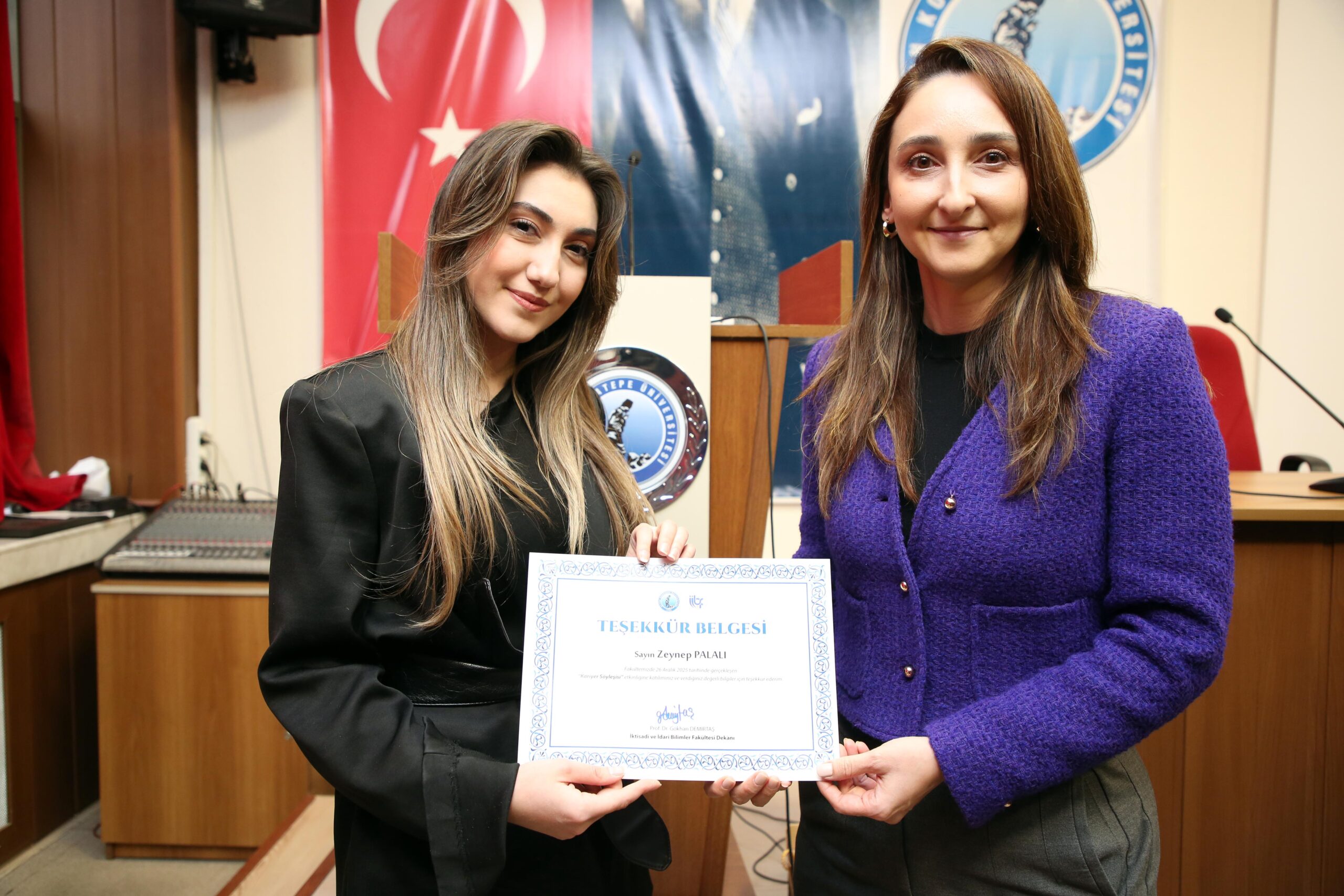 Prof. Dr. Sabri Bektöre Konferans Salonunda düzenlenen konferansa; İİBF Dekan Yardımcısı Dr. Öğretim Üyesi Hale Fulya Kaya ile birlikte akademik personel ve öğrenciler katıldı. “Kariyer Söyleşisi” etkinliğine konuk olan AKÜ mezunu ve Şeker Palas İşletmesi Sahibi Zeynep Palalı konuk oldu. Tatlı ve lokum sektöründe üçüncü nesil işletmeci olarak sektörde yer aldığını ifade eden Palalı, Şeker Palas markasının ortaya çıkış süreçlerini ve aile işletmesinin tarihini anlattı.