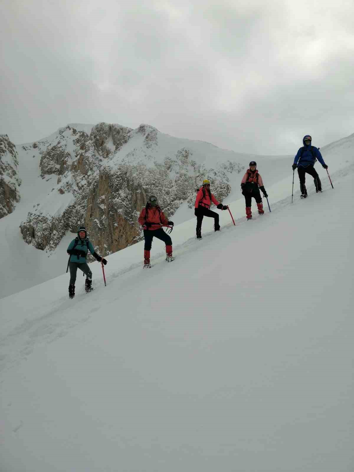 Dağcı Murat Akşit, yoğun kar yağışı altında sahur yapıp sabah namazı kıldıktan sonra harekete geçtiklerini belirterek, “Düşük tempo ile devam edip 2 bin 900 rakımlı bölgeye yaklaşınca bu etabın buz ve çığ riski oluşturan kornişle kaplı olduğunu gördük. Krampon ve kazma kullanarak son derece dikkatli bir şekilde sırt hata ulaştık. Burada da bizi çok yoğun sis karşıladı. Görüş mesafesinin 5 metreye düştüğü bu olumsuzlukta Wikiloc yardımıyla 3 bin 50 metrelik zirveye ulaştık. Oruçlu olduğumuz için zirvede kısa kalıp fotoğraf çektikten sonra inişe geçtik” dedi.BİTLİS (İHA)