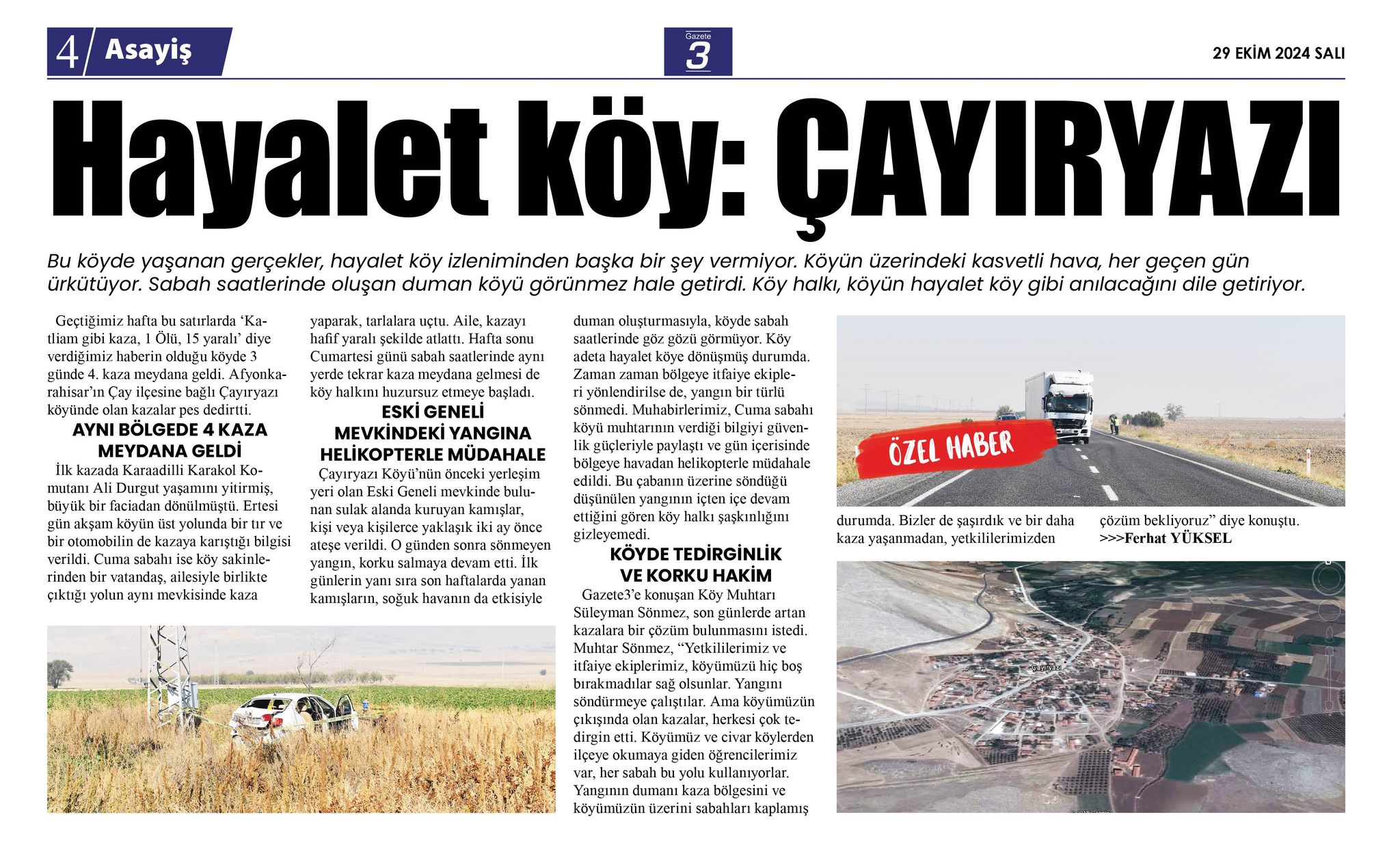 Gazete 3, köylülerin sesini kesintisiz şekilde gündeme taşıdı. Hem haberlerde hem de Gazeteci Ferhat Yüksel’in ‘Benim Köyümde Yangın Var!’ başlıklı köşe yazısında, tehlikenin büyüklüğü açıkça vurgulanmıştı. Yüksel, “Yangın var. Duman var. Kaza var. İnsan hayatı tehlikede. Çözüm gecikiyor” demişti. Gazete 3’ün sürekli takip ettiği bu sorun, geniş yankı uyandırdı.