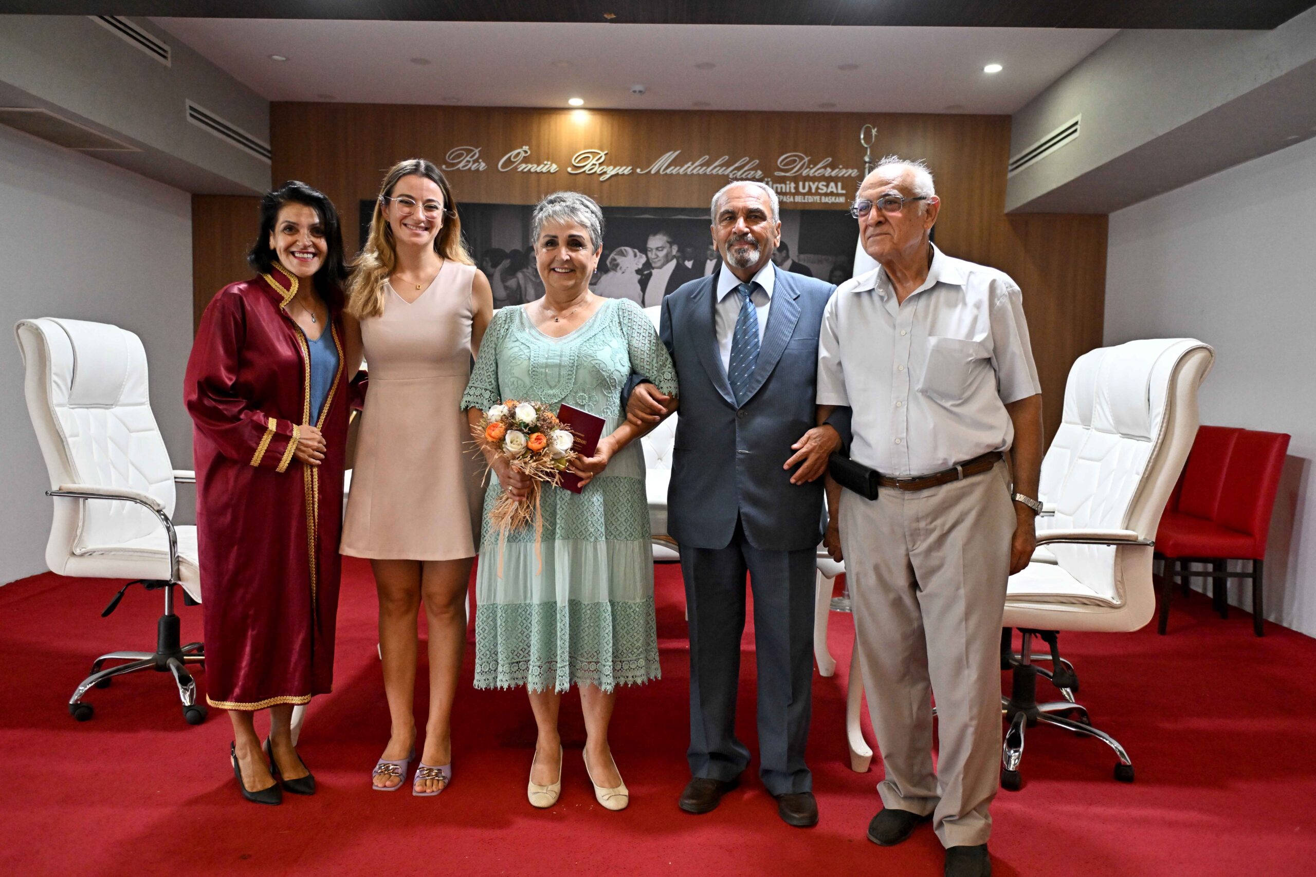 Muratpaşa Belediyesi’nin 60 yaş üstü kıdemli sakinlerinin bir araya geldikleri, sosyalleştikleri, çeşitli eğitim ve aktivitelerle vakit geçirdikleri yaşlı evlerinde tanışan ve zamanla bu arkadaşlıkları aşka dönüşen Alihafızoğlu ile Yılmaz hayatlarını birleştirme kararı aldı. Mutluluğu ve enerjisiyle dikkat çeken Gülnur Alihafızoğlu “Belediyemizin Çiftekuyular Yaşlı Evi’nde tanıştık. İsmim Gülnur hep gülerim, Ömer Bey benim gülüşüme aşık olmuş. Önce bu yaşta aşk olmaz dedim ama iki yılda beni ikna etti. Bugün dünya evine girdik. Çok mutluyum” dedi. İmzalar atıldıktan sonra ayağına basmayı ihmal etmeyen Alihafızoğlu’nun zaman zaman gözyaşlarını tutamadığı görüldü. İki yıldır hiç vazgeçmediğini ifade eden Yılmaz, “Çok mutluyum. Hiç vazgeçmedim. Bugün ‘Evet’ dedik” dedi. Yaşlı evleri sakinlerinin de katıldığı sade bir törenle mutluluğa “Evet” diyen çifte Muratpaşa Belediye Başkanı Ümit Uysal’ın tebrik mesajını ileten nikah memuru, aile cüzdanını teslim etti.>>> İHA