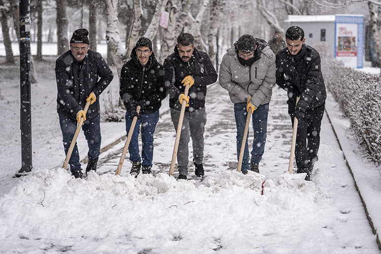 Belediye ekipleri de sokak ve kaldırımlarda karla mücadele çalışması yürüttü.