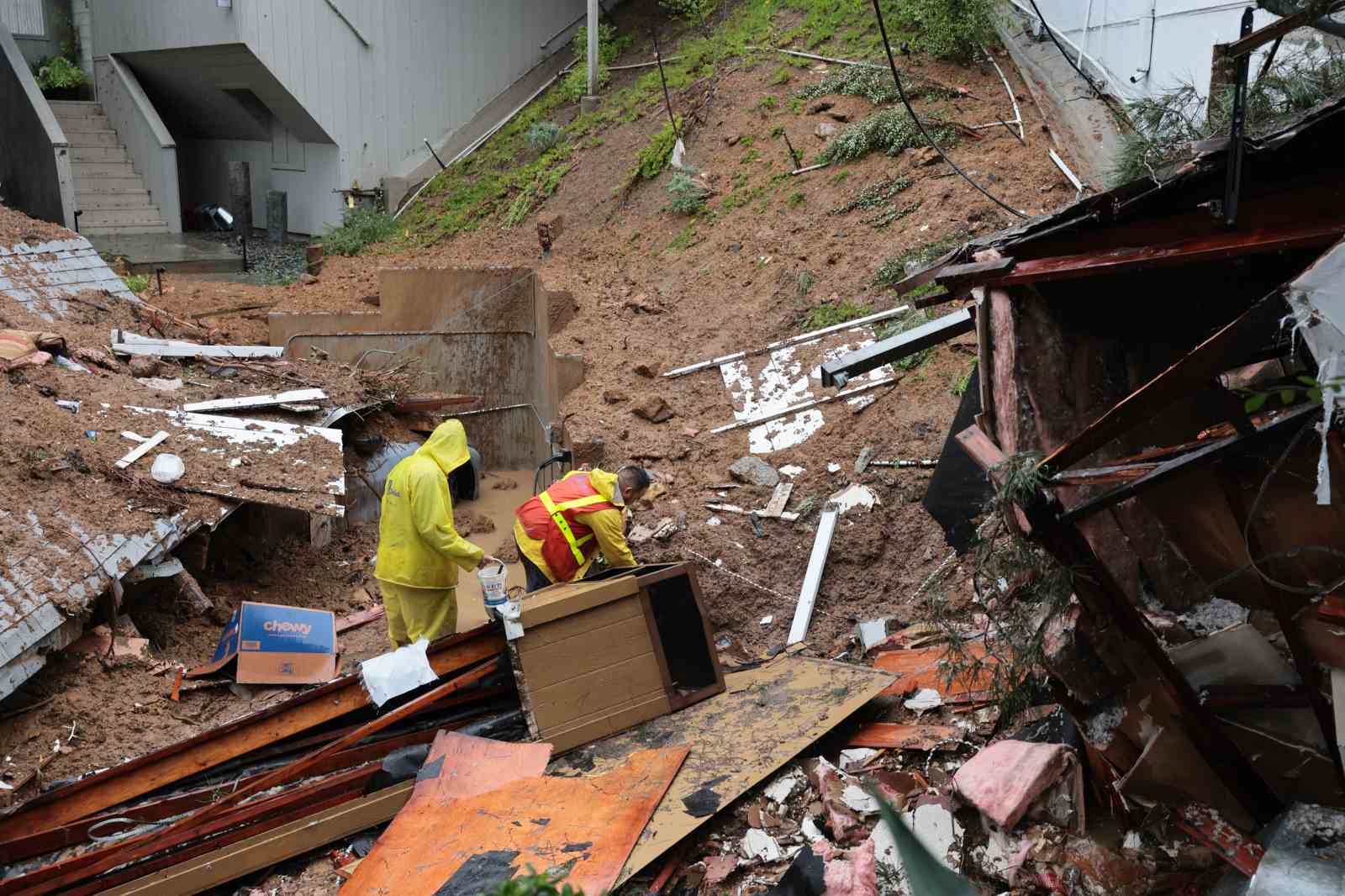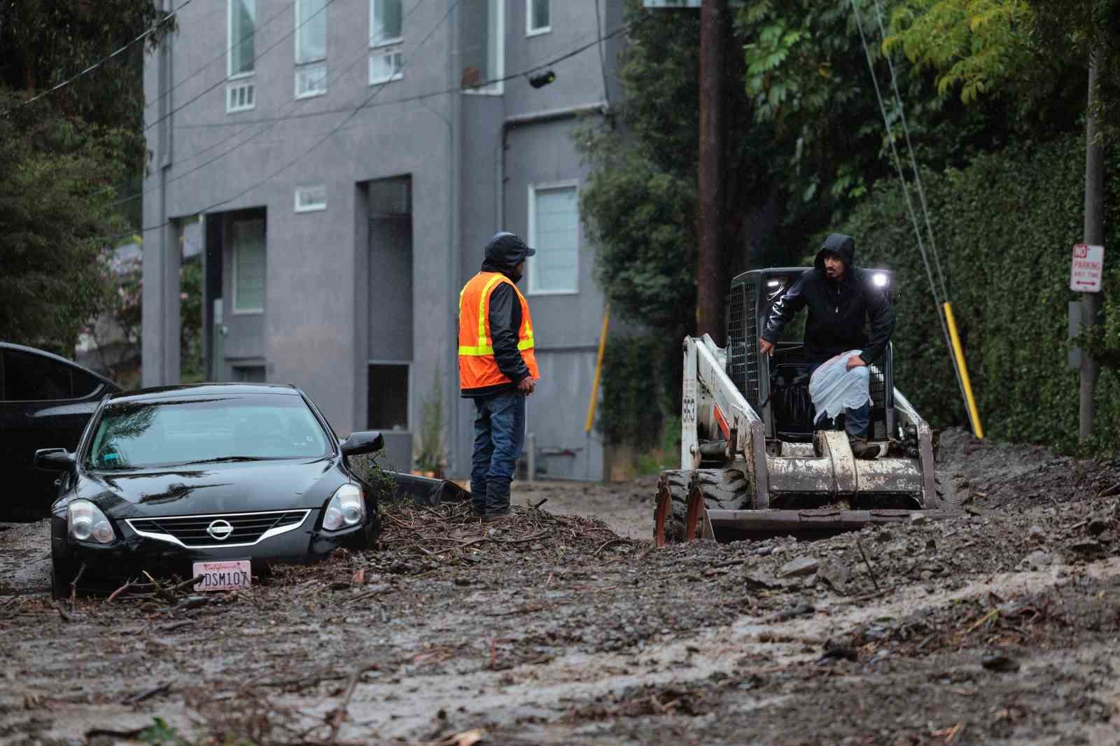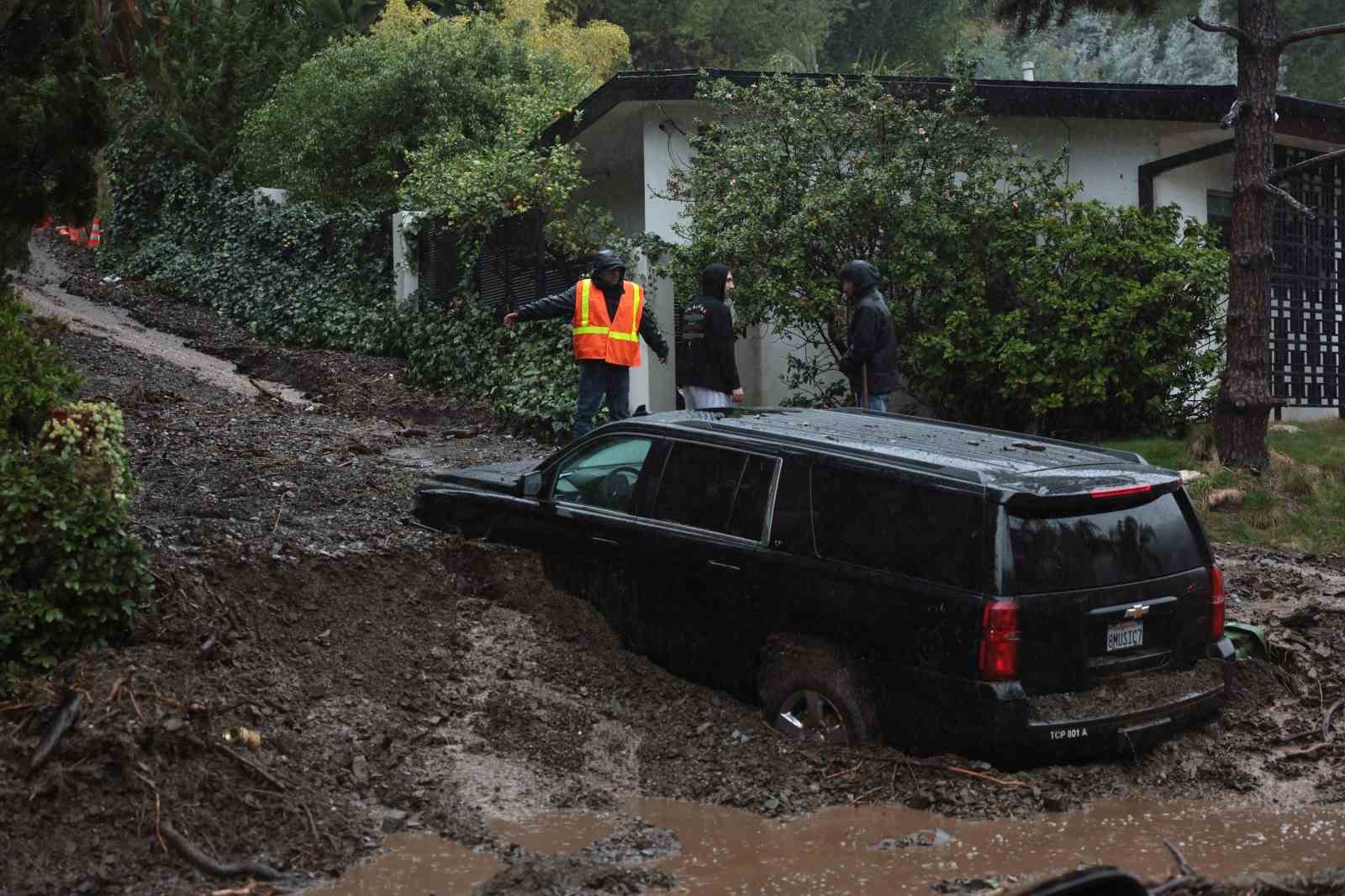 Los Angeles’ın lüks Bel Air ve Beverly Hills semtlerinde sokaklar çamurla kaplandı, mahsur kalan sürücülerin yardımına ekipler koştu. Los Angeles İtfaiyesi, nehirde köpeğiyle birlikte mahsur kalan bir adamı kurtarırken, o anlar amatör kameraya yansıdı.