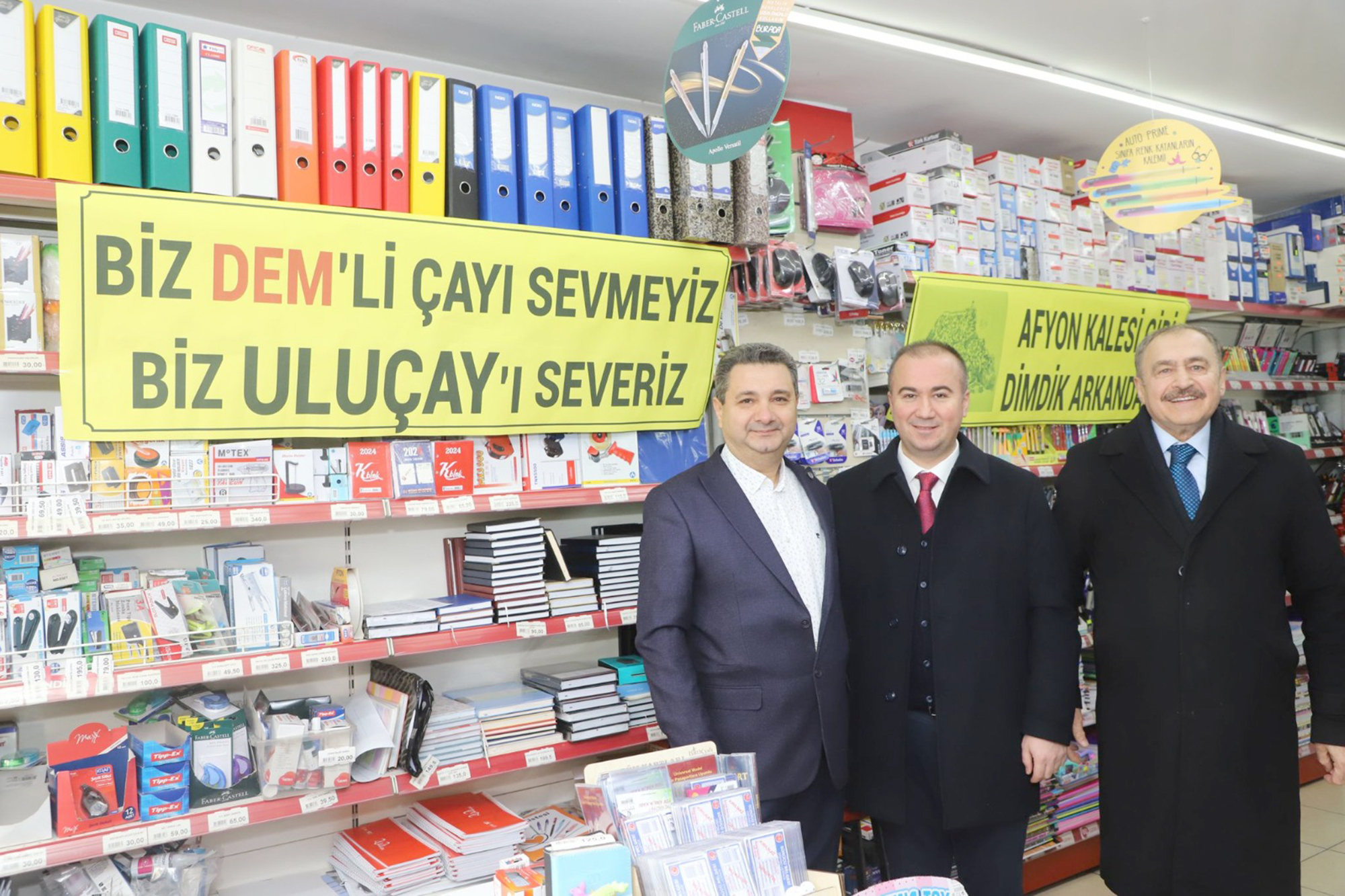 Esnaf ziyaretinde konuşan Uluçay, “Sayın Bakanımız Veysel Eroğlu ve teşkilat mensuplarımız ile birlikte Sevgi Yolu’ndaki esnaflarımızı ziyaret ettik. Esnaflarımız hem davamıza hem Sayın Bakanımıza her zaman sahip çıktı, şimdi de sahip çıkacaklarından hiçbir şüphemiz yok. Yerel esnaflarımıza kalkınmaları için her türlü desteği vereceğiz. Esnaflarımızı daha da ileri seviyede kalkındırmak adına projelerimiz var. Tek tek dolaşarak esnaflarımıza projelerimizi aktarıp istişare ediyoruz. Bende içlerinden gelen bir esnaf kardeşleri olarak talep ve isteklerini yakinen bildiğim için inşallah çözüm önerilerimizde birlikte hareket edeceğiz. Bakanlarımızın ve milletvekillerimizin destekleriyle daha mutlu bir Afyonkarahisar’ı birlikte inşaa edeceğiz inşallah” dedi.