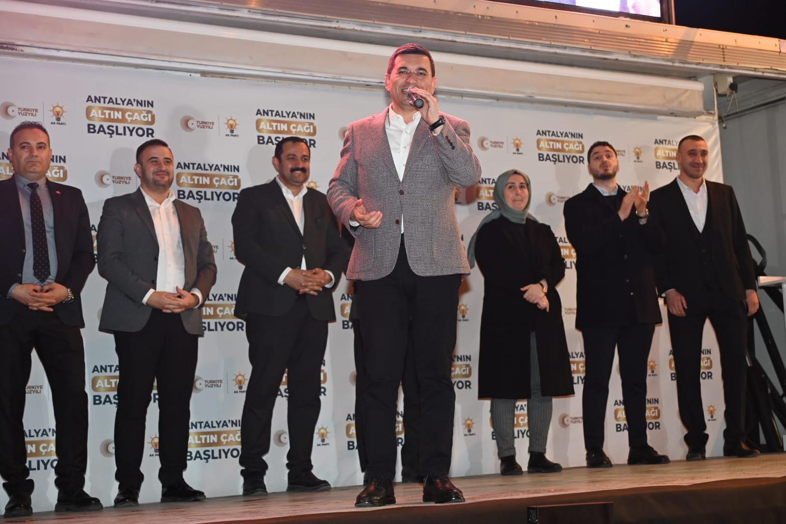 “Hakan Tütüncü, Kepez’in gururu” sloganları üzerine Tütüncü, “Kepez’in gurur Kepezliler. Sizler bize yol vermeseydiniz, sizler bizi sandıkta desteklememiş olsaydınız bu eserlerin, bu hizmetlerin hiç birini yapamazdık. Bu eserlerin gerçek sahibi de, bu eserlerin mimarı da sizlersiniz. Kepezliler ve bizim hemşehrilerimiz. Şimdi Kepez’de elde ettiğimiz tecrübeyi, başarıları Büyükşehir Belediyesi’nde Antalya’nın 19 ilçesine taşıyacağız. Bunu da Kepez’den aldığımız güçle, ilhamla, enerjiyle hep beraber yapacağız” dedi.