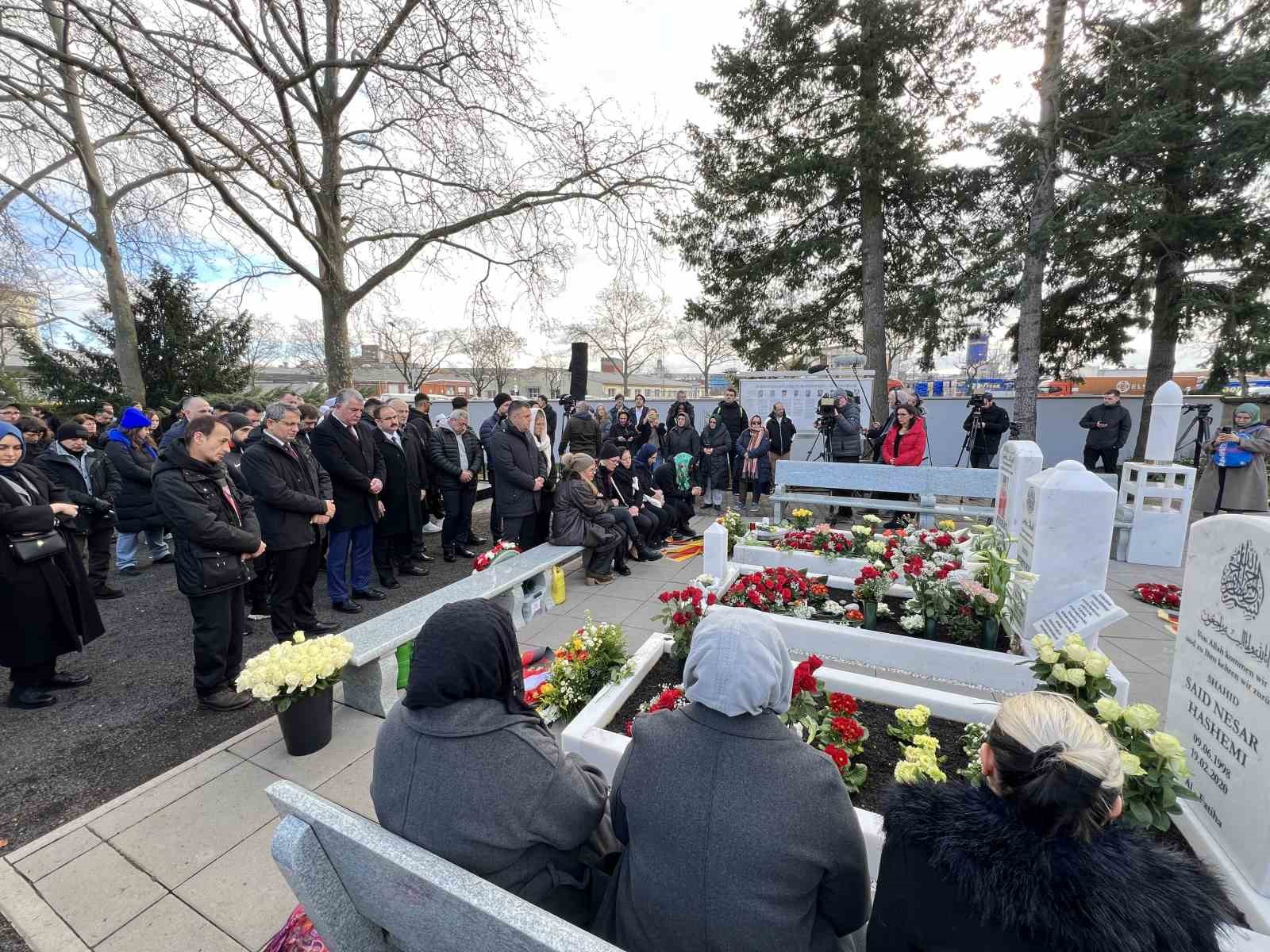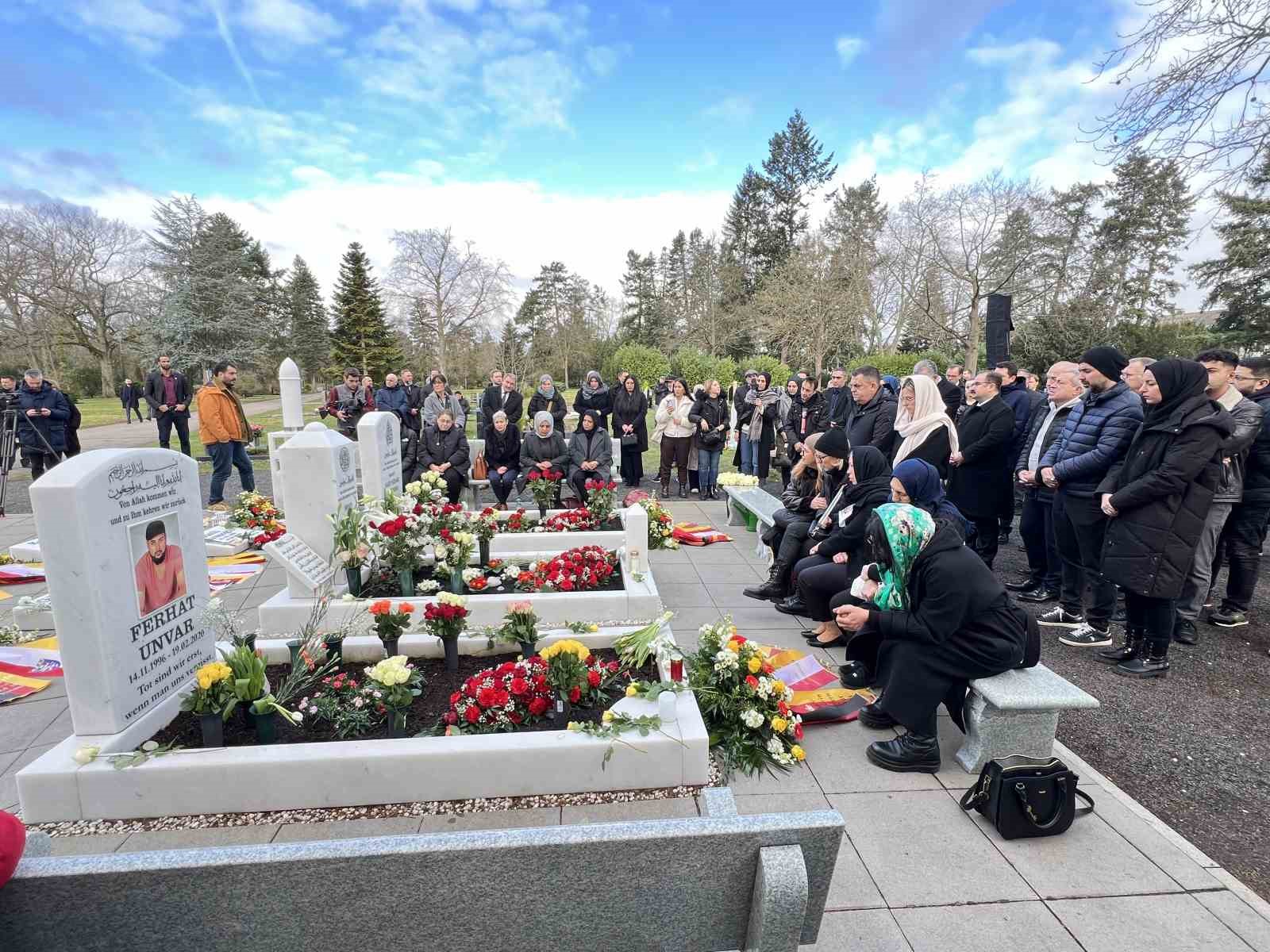 Almanya’nın Hessen eyaletine bağlı Hanau kentinde 19 Şubat 2020’de düzenlenen ırkçı terör saldırısının 4’üncü yıl dönümünde Hanau Merkez Mezarlığı’nda anma töreni düzenlendi. Saygı duruşu ile başlayan törende terör saldırısında hayatını kaybedenlerin mezarlarına çiçek bırakılıp dua edildi. Ferhat Ünvar, Said Nesar Hashemi ve Hamza Kurtoviç’in mezarı başında düzenlenen törene Türkiye’nin Berlin Büyükelçisi Ahmet Başar Şen, Frankfurt Başkonsolosu Erdem Tunçer, Alman Federal İçişleri Bakanı Nancy Faeser, Hanau Belediye Başkanı Claus Kaminsky ve Hessen eyalet Başbakan Yardımcısı Kaweh Mansoori katıldı. Faeser ve Büyükelçi Şen, kurbanların yakınlarına yeniden başsağlığı temennisinde bulundu.