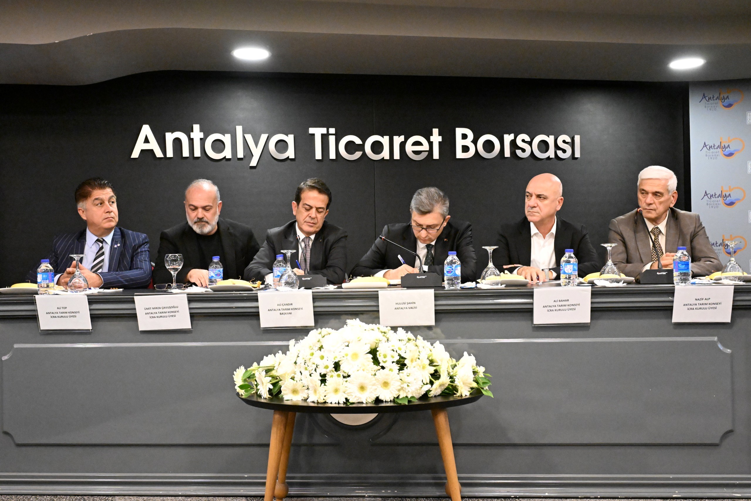 Antalya Valisi Hulusi Şahin, Antalya Tarım Konseyi’nin (ATAK) konuğu oldu. Antalya Tarım Konseyi (ATAK) ve Antalya Ticaret Borsası (ATB) Yönetim Kurulu Başkanı Ali Çandır ev sahipliğinde ATB’deki toplantıya, ATAK İcra Kurulu Üyeleri ATSO Başkanı Ali Bahar, BAİB Başkanı Ümit Mirza Çavuşoğlu, Ziraat Mühendisleri Odası Antalya Şube Başkanı Ali Top, Ziraat Odası Başkanı Nazif Alp, MATSO Başkanı Seydi Tahsin Güngör, Antalya Tarım ve Orman Müdürü Şakir Fırat Erkal, BATEM Müdürü Abdullah Ünlü, Teknokent Genel Müdürü İbrahim Yavuz ile ATAK Danışma Kurulu Üyeleri katıldı.