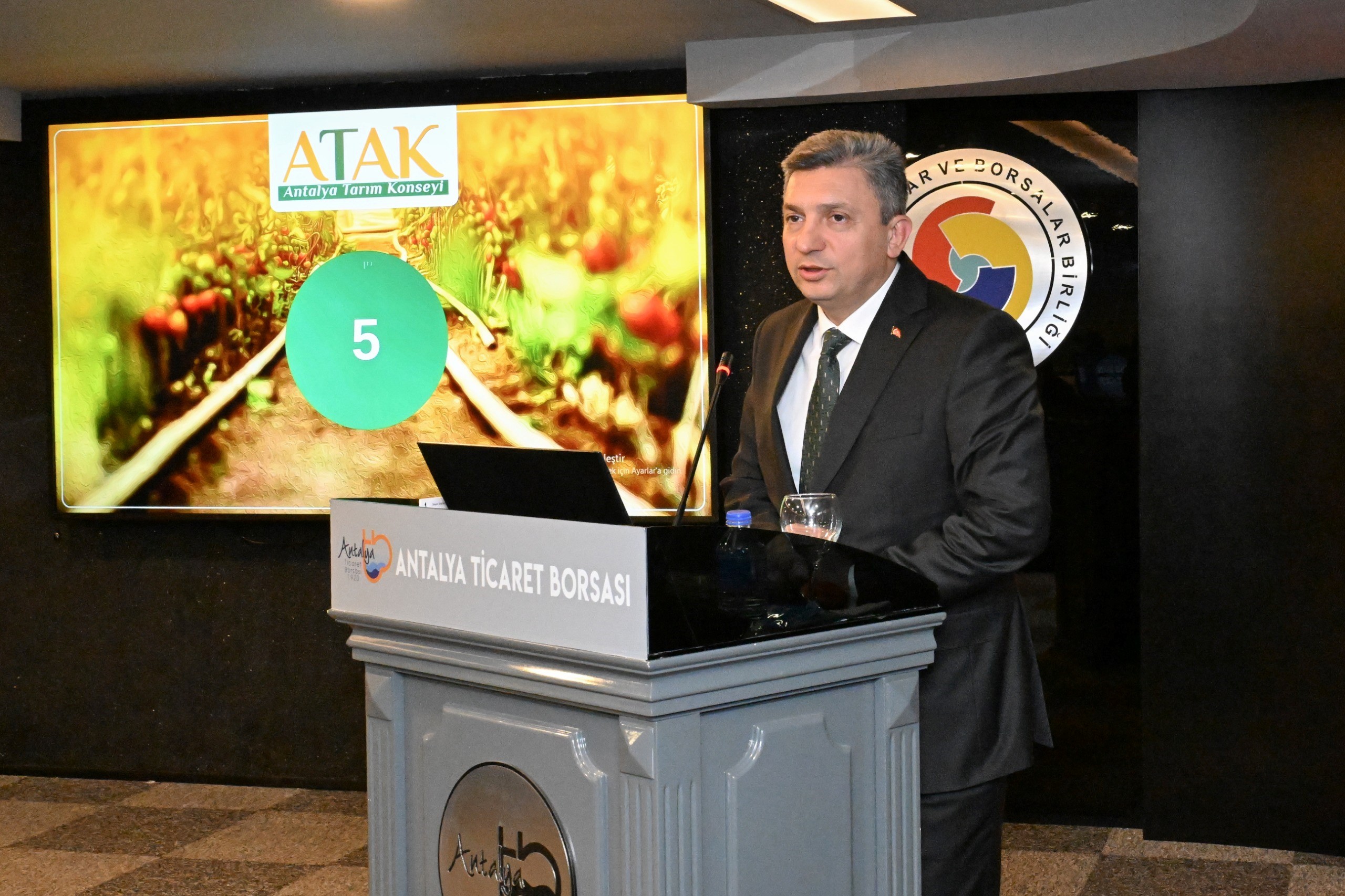 Toplantıda ATAK Başkanı Ali Çandır, ATAK’ın yapısını anlatırken Antalya tarımını özetleyen bir sunum yaptı. Antalya Tarım Konseyi’nin Türkiye’de tarım alanında kurulan ilk yapı olduğunu kaydeden Çandır, “Konsey, 51 üyesiyle birlikte 400 bin kişiyi temsil eden Antalya’nın en geniş tarım platformudur” dedi.