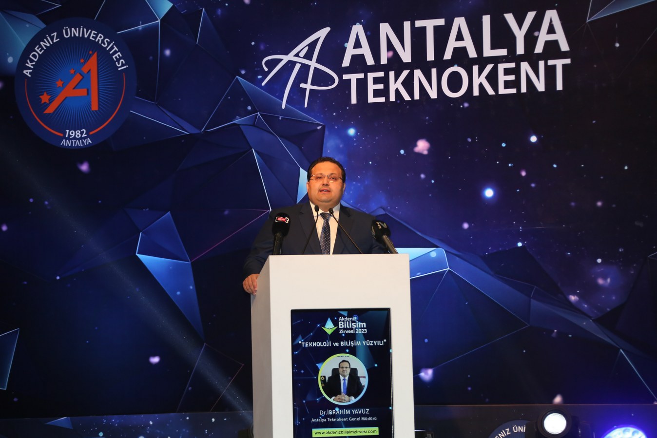 Antalya Teknokent Genel Müdürü Dr. İbrahim Yavuz, “7 yılda Türkiye’nin en büyük zirvelerinden biri haline getirdiğimiz Akdeniz Bilişim Zirvesini bu yıl Cumhuriyetimizin 100. Yılı Anısına ‘Teknoloji Ve Bilişim Yüzyılı’ temasıyla gerçekleştiriyoruz. Antalya Teknokentimizde uzay havacılık, savunma sanayii, bilişim, yazılım, tarım, turizm ve sağlık alanında son yıllarda hayata geçirdiğimiz yeni projelerimizle Türkiye’nin en iyi teknokentleri arasında vizyonumuz ve misyonumuz ile farklı bir yere sahip olmak için var gücümüzle çalışmaya devam ediyor, her alanda başarılı olma iddiamızı sürdürüyoruz” şeklinde konuştu.