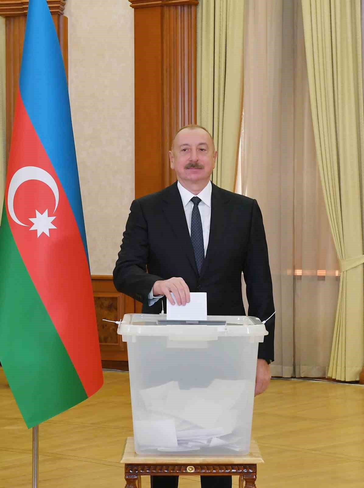 Azerbaycan’da halk, erken cumhurbaşkanlığı seçimi için sandık başında. Azerbaycan’ı 7 yıl yönetecek yeni cumhurbaşkanının belli olacağı seçimde oy verme işlemi yerel saatle 08.00’de başladı. Azerbaycan Cumhurbaşkanı İlham Aliyev, eşi ve Cumhurbaşkanı Birinci Yardımcısı Mehriban Aliyeva, çocukları Leyla Aliyeva, Arzu Aliyeva, oğlu Haydar Aliyev ve gelini ile işgalden kurtarılan Hankendi’deki 125 numaralı seçim merkezine gelerek oyunu kullandı.