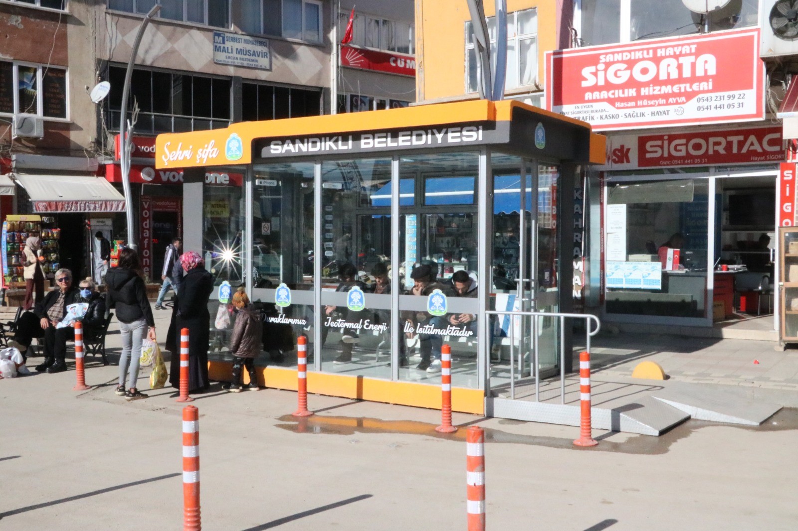 Termal su kaynakları ile ünlü Afyonkarahisar’ın Sandıklı ilçesinde turizmle birlikte konut ve sera ısıtmasından kullanılan su, şimdi de ilçedeki otobüs duraklarında kullanılmaya başlandı.