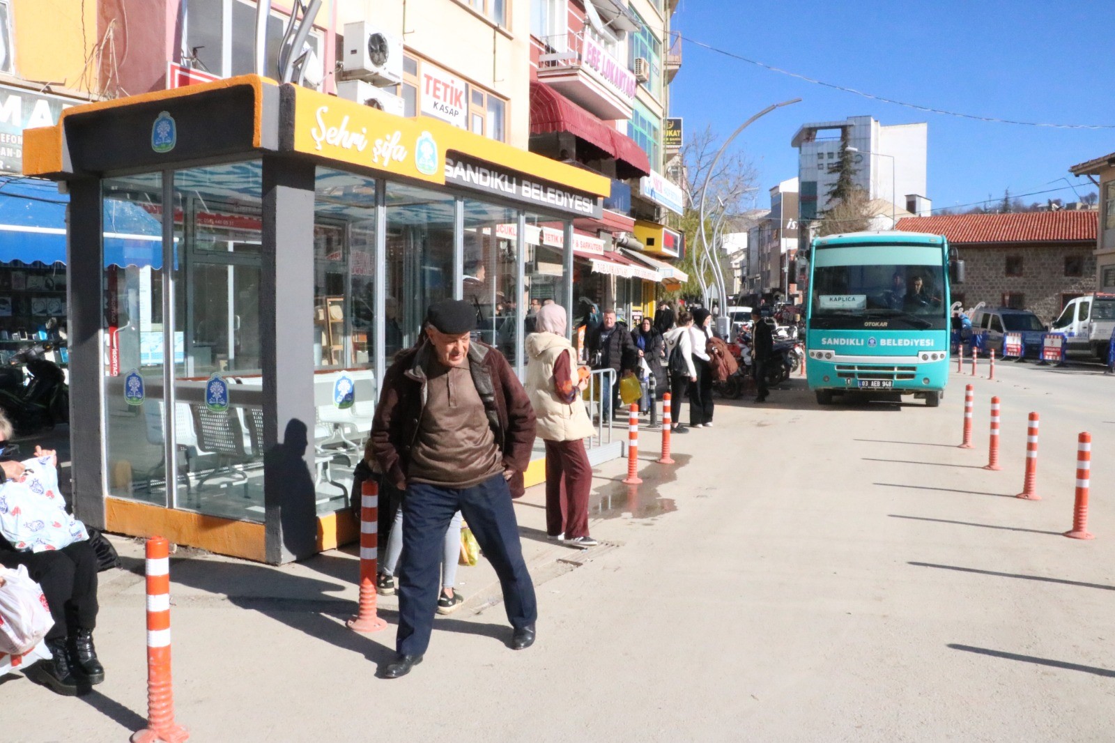 Sandıklı ilçesinde jeotermal su ile ısınan otobüs durakları faaliyete geçti. Sandıklı ilçe merkezinin durak noktalarına ve Hüdai Kaplıcaları’nda jeotermal su ile ısınan otobüs durakları faaliyete geçti. Dört tarafı kapalı şekilde ve içinde kalorifer peteği bulunan otobüs duraklarının kış aylarında Hüdai Kaplıcaları’ndan çıkan ve ilçede konutlar ile seraları ısıtan jeotermal su ile ısınması sağlanıyor. Bu duraklar sayesinde vatandaşların kış günlerinde sıcak bir ortamda otobüs beklemesi amaçlanıyor. Belediye tarafından yaptırılan durakların oturaklarının yanı sıra ısınmasını sağlayacak petekler yerleştirildi. Yine engelliler için durakların girişine engelli rampası da yapıldı.
