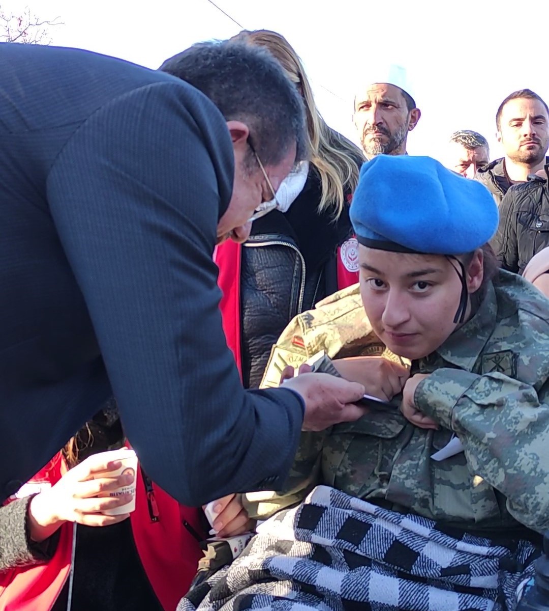 Irak’ın kuzeyinde bölücü terör örgütü tarafından düzenlenen saldırıda şehit olan 6 askerden birisi olan 32 yaşındaki Piyade Uzman Çavuş Mehmet Serinkan’ın cenazesi, memleketi Denizli’nin Tavas ilçesinde toprağa verildi. Törene askeri üniformayla katılan Çilem Serinkan, eşinin Türk bayrağına sarılı tabutuna dakikalarca sarılırken, alana tekerlekli sandalyeyle getirilen şehidin 23 yaşındaki engeli kardeşi Büşra Serinkan da ağabeyinin fotoğrafına bakarak gözyaşı döktü. Şehit askere son görevlerini yapan eşi ve kardeşinin yaşadıkları acı görenlerin içini sızlattı.