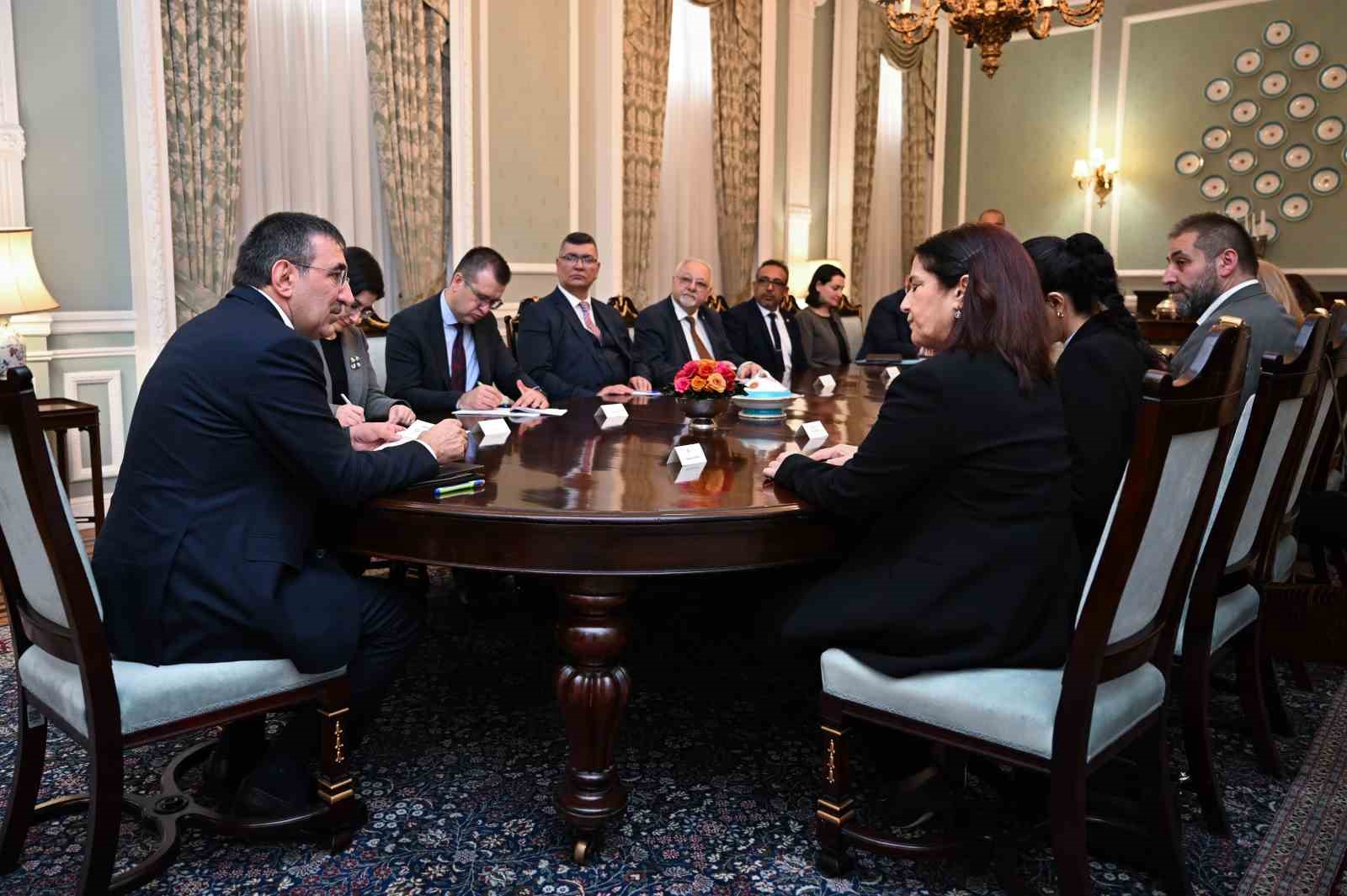 Cumhurbaşkanı Yardımcısı Cevdet Yılmaz, İngiltere’nin başkenti Londra’da Türk iş dünyası temsilcilerinin yanı sıra Türk ve Kıbrıslı Türk toplum temsilcileriyle bir araya geldi.