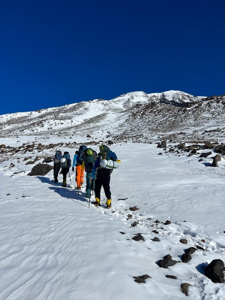 Ağrı Dağı’nda yerel rehber olan Nejdet Bozkurt, 4 bin 200 rakımdan aşağı inmeye başlarken, havanın çok soğuk ve rüzgarlı olması kendilerini çok zorladığını söyledi. Bozkurt, “Ağrı Dağı’ndan aşağı iniyoruz. 4 bin 200’den aşağı doğru iniyoruz hava kapalı gece bayağı rüzgar vardı. Ekip iyi, hava kötü ama aşağı iniyoruz artık Noel baba oldum” dedi.