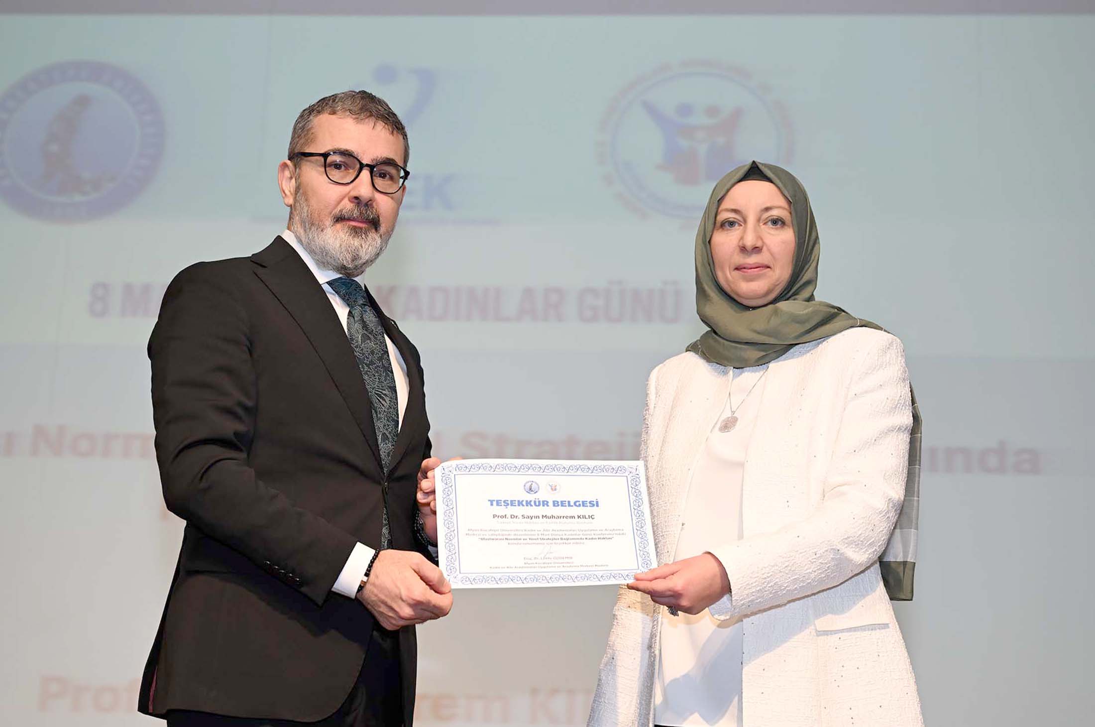 Afyonkarahisar Vali Yardımcısı Betül Büyükkılıç ise geri kalmış veya gelişmiş ülke farkı olmaksızın tüm toplumlarda kadınlara karşı ayrımcılık ve kadına yönelik şiddet olaylarına tanık olunduğunu kaydetti. Büyükkılıç, “Kimilerince yoksulluk, sağlık ve eğitim hizmetlerine erişimde eşitsizlik gibi yapısal şiddet türlerini de kapsayacak şekilde geniş tabanlı bir tanım tercih edilirken, bir kesimde betimsel gücünü yitirmemesi adına daha sınırlı bir tanımın yapılmasını savunsa da kadına yönelik şiddetin, kadınların erkeklerle eşit hak ve özgürlüklerini kullanmalarını ciddi şekilde engelleyen ayrımcılık çeşidi olduğu aşikar” dedi. Büyükkılıç, “Şiddetle mücadelede kadının güçlendirilmesi çerçevesinde fıtrat, onur, liyakat, yetkinlik, iş ve aile dengesinin sağlanması, evliliğin ve ailenin korunması, güvenli, insan onuruna yakışır iş kavramları önümüzde temel değerler olarak bulunmakta” diye konuştu.