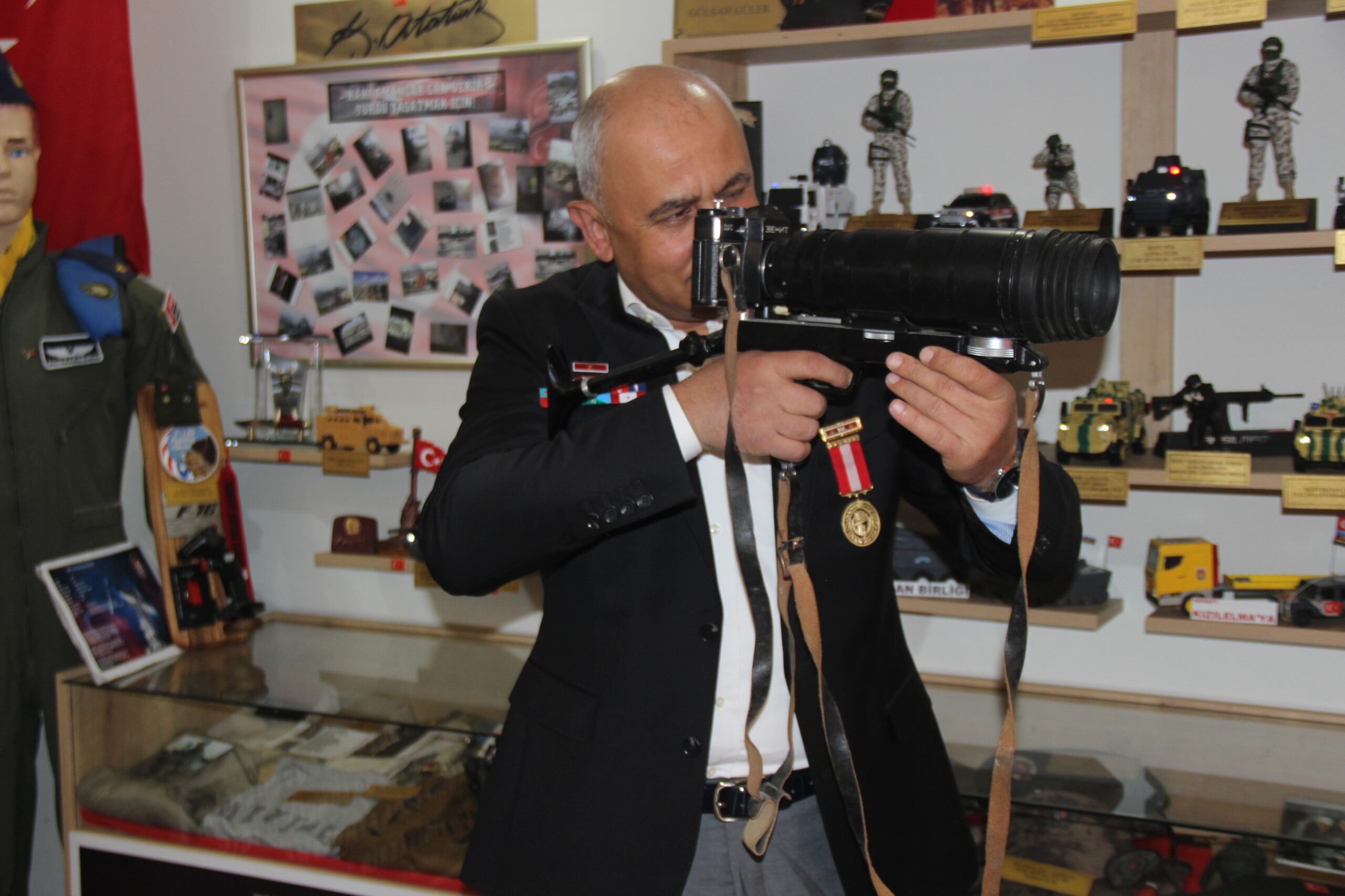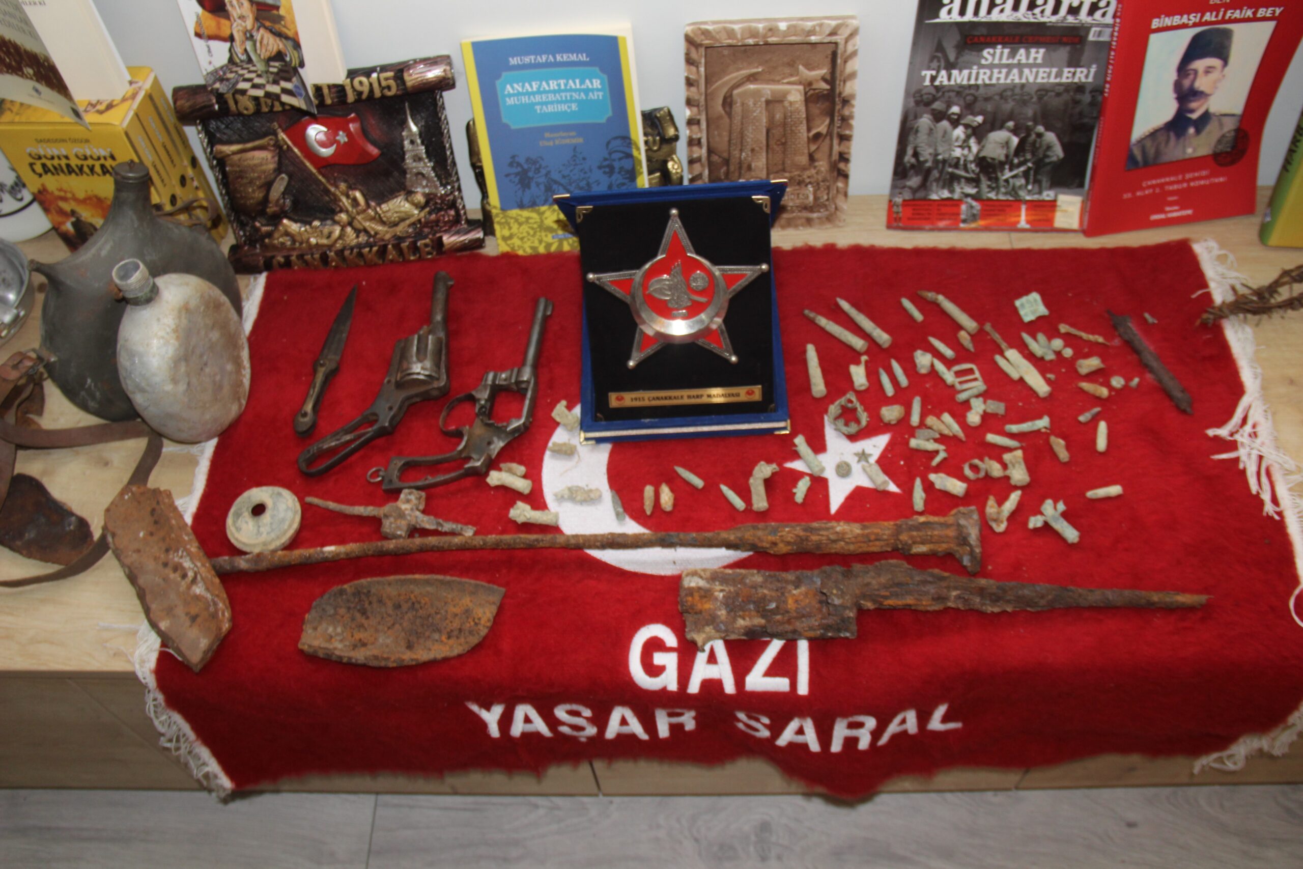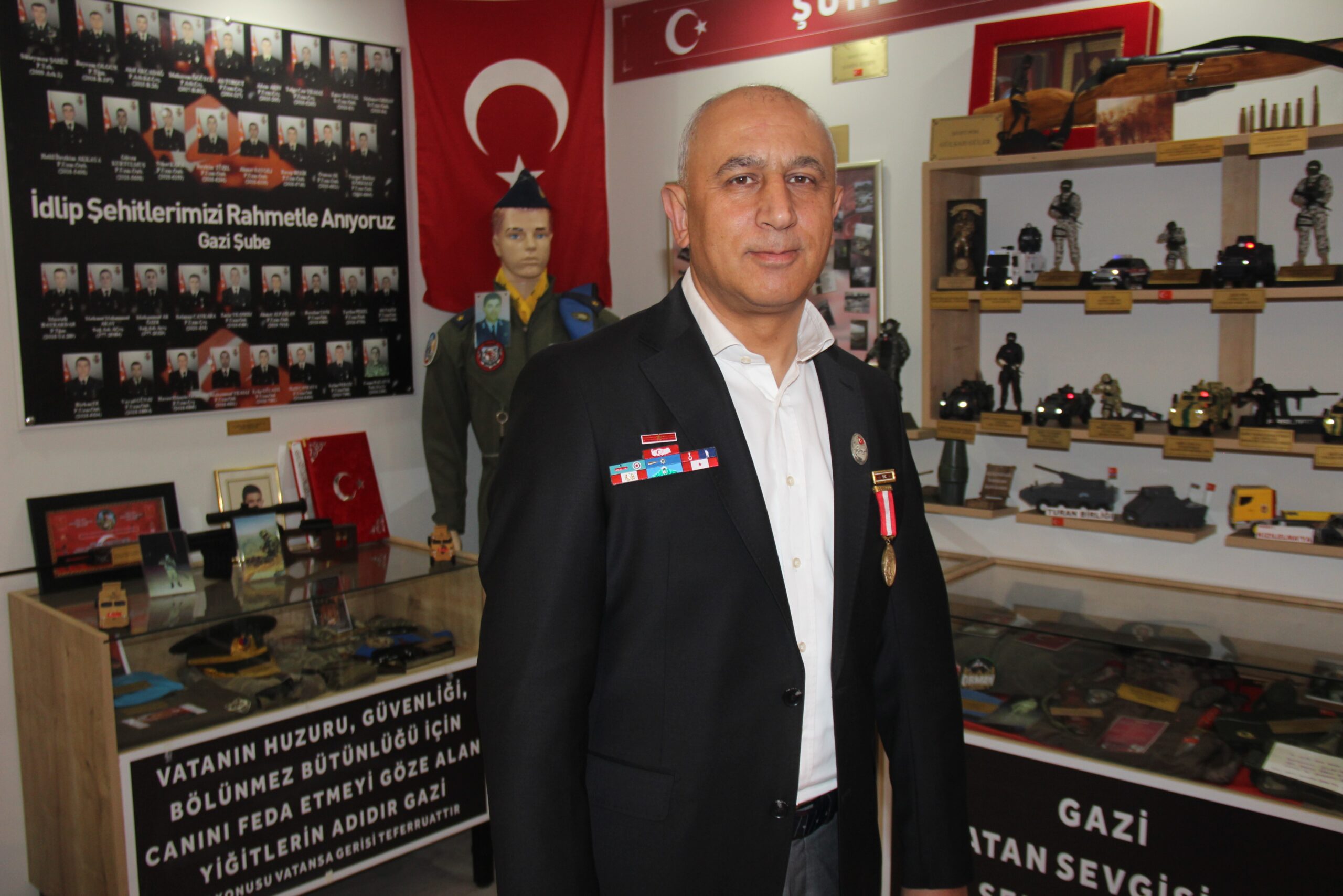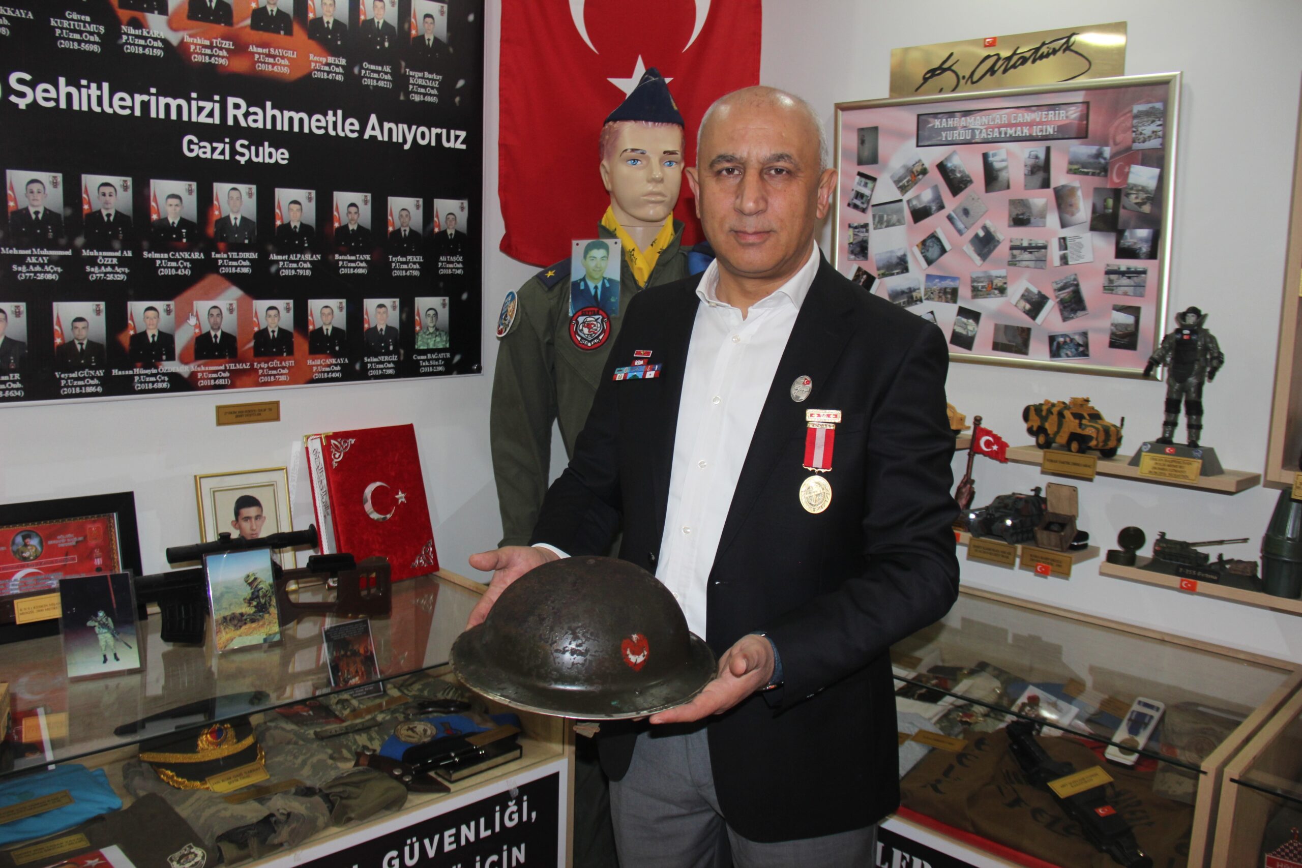 1994’de gazi olduğunu anlatan Yaşar Saral, “1994 yılında Bingöl’de bölücü terör örgütü mensuplarıyla girmiş olduğum çatışmada sol göğsünden 3 kurşun ve sağ kolumdan el bombası yemek suretiyle yaralandım. Çatışmada 7 arkadaşım şehit verdim. Daha sonraki süreçte müze yaptım ve ismini ‘Şühedaya Vefa Emanetlere Beka Müzesi’ koydum. Geleceğimiz olan evlatlarımıza geçmişi unutturmayıp, şehitlerimizi hatırlatmak, vatanın nasıl vatan olduğunu göstermek amacıyla müzeyi kurdum” dedi.