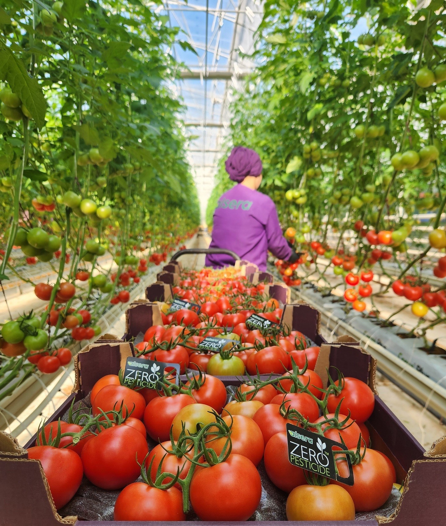 Koçoğlu, sözlerine şöyle devam etti: “Domatese olan küresel talep oldukça yüksek ve ülkemiz domates üretiminde dünyada üçüncü sırada. Biz de faaliyetlerimize ilk olarak 2023 yılının Mart ayında Afyon Sandıklı’da satın aldığımız seralarda domates üretimiyle başladık. Yıl sonunda ilk hedefimiz olan 500 dönüm seraya ulaştık. İlave olarak satın aldığımız jeotermal seracılığa uygun bin 500 dönüm alanda da kendi modern seralarımızı kurmaya başladık. Modern seralarda üretim topraktan bağımsız olduğu için, biyolojik, kültürel, mekanik ve fiziksel mücadele unsurlarını bir araya getirerek pestisit kullanmadan sağlıklı gıda üretebiliyoruz. Temiz yetiştirme ortamı ve temiz su kullanıyor, zararlı popülasyonunu sıfırlayacak kimyasal ilaç kullanımı yerine bu popülasyonlarla doğal yollardan mücadele yürütüyoruz. Örneğin bitkilerimizi korumak için lavanta, kekik ve farklı bitkilerden sera etrafına yeşil duvar oluşturuyor, ilgili zararlıları kovucu niteliklere sahip faydalı canlılara konak sağlamış oluyoruz. Yapışkan tuzaklar ve zararlıların çoğalmasını minimize eden feromonlar sayesinde popülasyonu kontrol altında tutabiliyoruz. ‘Sıfır kalıntı’yla ürettiğimiz domatesler ihracat tarafında da yüksek rağbet görüyor. İngiltere, Hollanda, Almanya, Belçika gibi Avrupa ülkeleri başta olmak üzere toplam 18 ülkeye domates ihraç ediyoruz. Optimize edilmiş, dijitalleşmiş ve gerçek zamanlı takip edilebilen üretim süreçleri sayesinde yüksek bir ekonomik katma değere ulaşmayı hedefliyoruz.’’