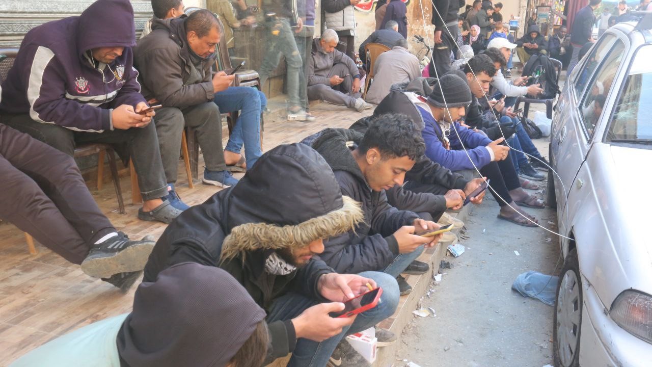 Sevdikleriyle konuşmak isteyen Gazzeliler internet kafenin önünde toplanıyor
