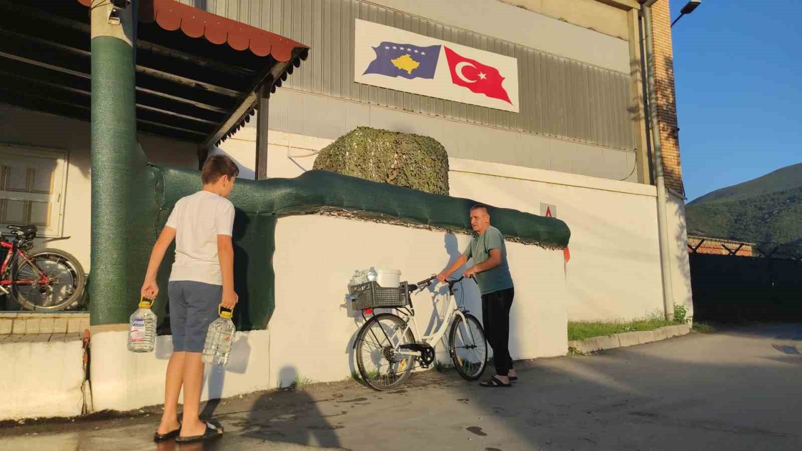 Kosova’nın Prizren bölgesinde bir haftadır kesik olan sular ve sıcak havalar nedeniyle halk zor günler yaşıyor. Su sorunu yaşayan Kosovalıların yardımına bölgede görevli olan Türk askeri yetişti. Kosova Türk Temsil Heyeti Başkanlığı’nın konuşlu olduğu bölgede su sorunu yaşayan vatandaşlara, kışlanın nizamiyesine çekilen hortum yardımı ile su dağıtımı yapılıyor. Kosovalılar yanlarında getirdikleri kapları ve bidonları suyla doldurarak evlerine taşıyor.