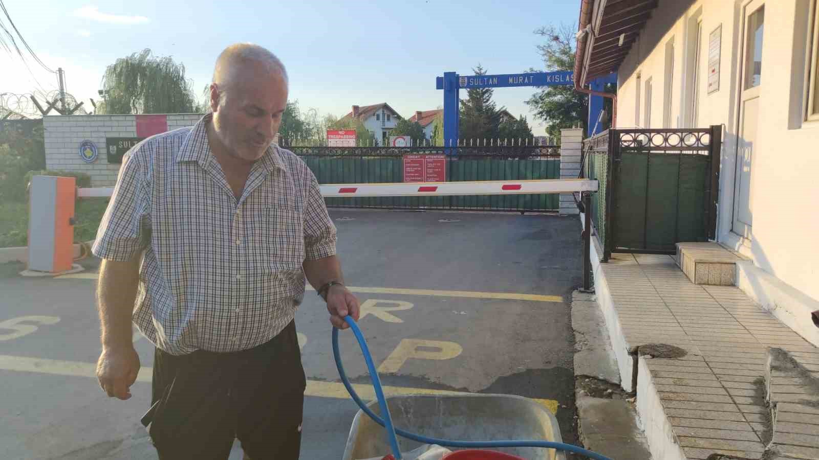 Kışladan su dolduran bir Kosovalı, bir haftadır suların kesik olduğunu belirterek, Türk askerine teşekkür etti.