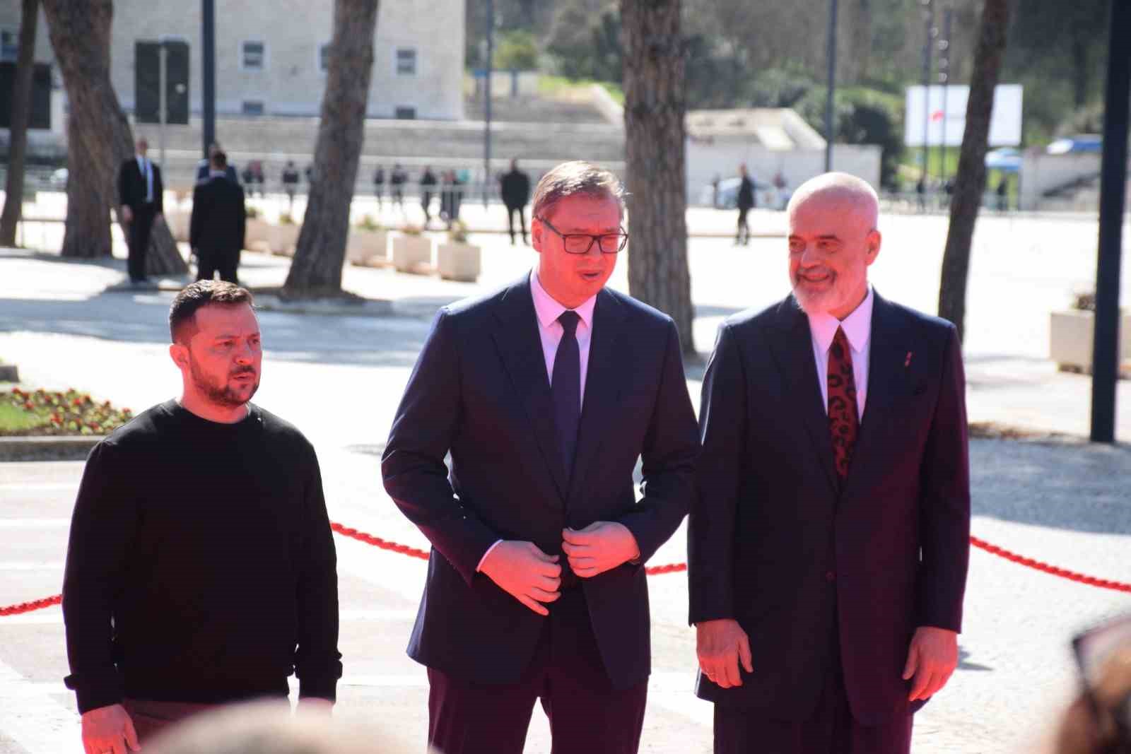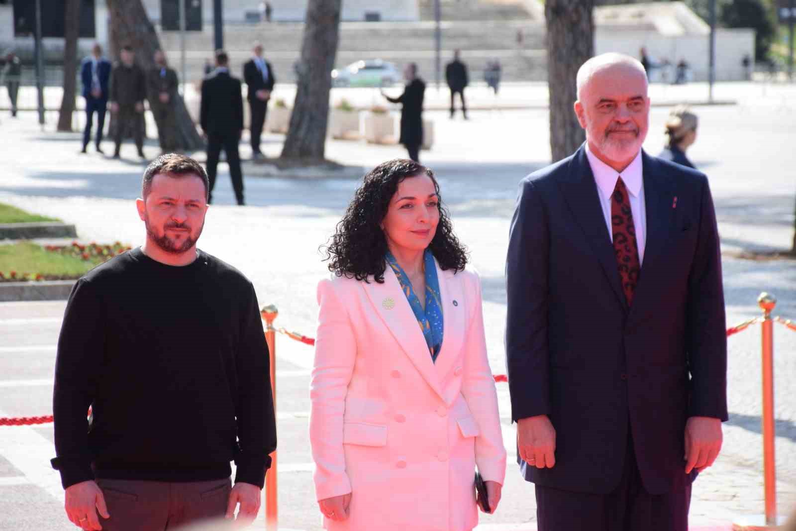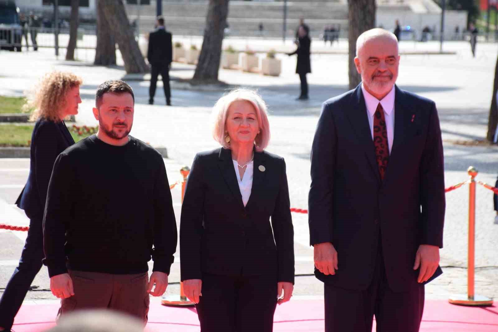 Konuşmasına teşekkür ederek başlayan Zelenskiy ise, “Bu zirveyi düzenleyip bizleri ağırladığınız için teşekkür ediyorum. Bu formatta ikinci kez buluşuyoruz, ilki Atina’da düzenlenmişti ve şimdi de Tiran’da bir araya geldik. Burada hep birlikte Avrupa’yı nasıl güçlendirebileceğimizi tartışma fırsatını buluyoruz ve bunu takdir ediyorum. Avrupa’nın her devletin, her ulusun kendi geleceğini belirlediği bir alan olmasını istiyoruz. Biz de geçmişte ulusların geleceğini belirlemeye çabalayan insanların var olduğunu gördük. Bu durum Balkan’da, Doğu Avrupa’da ve Avrupa’nın diğer tüm ülkelerinde yaşandı. Şimdi Putin’in yapmak istediği tam da budur” dedi.