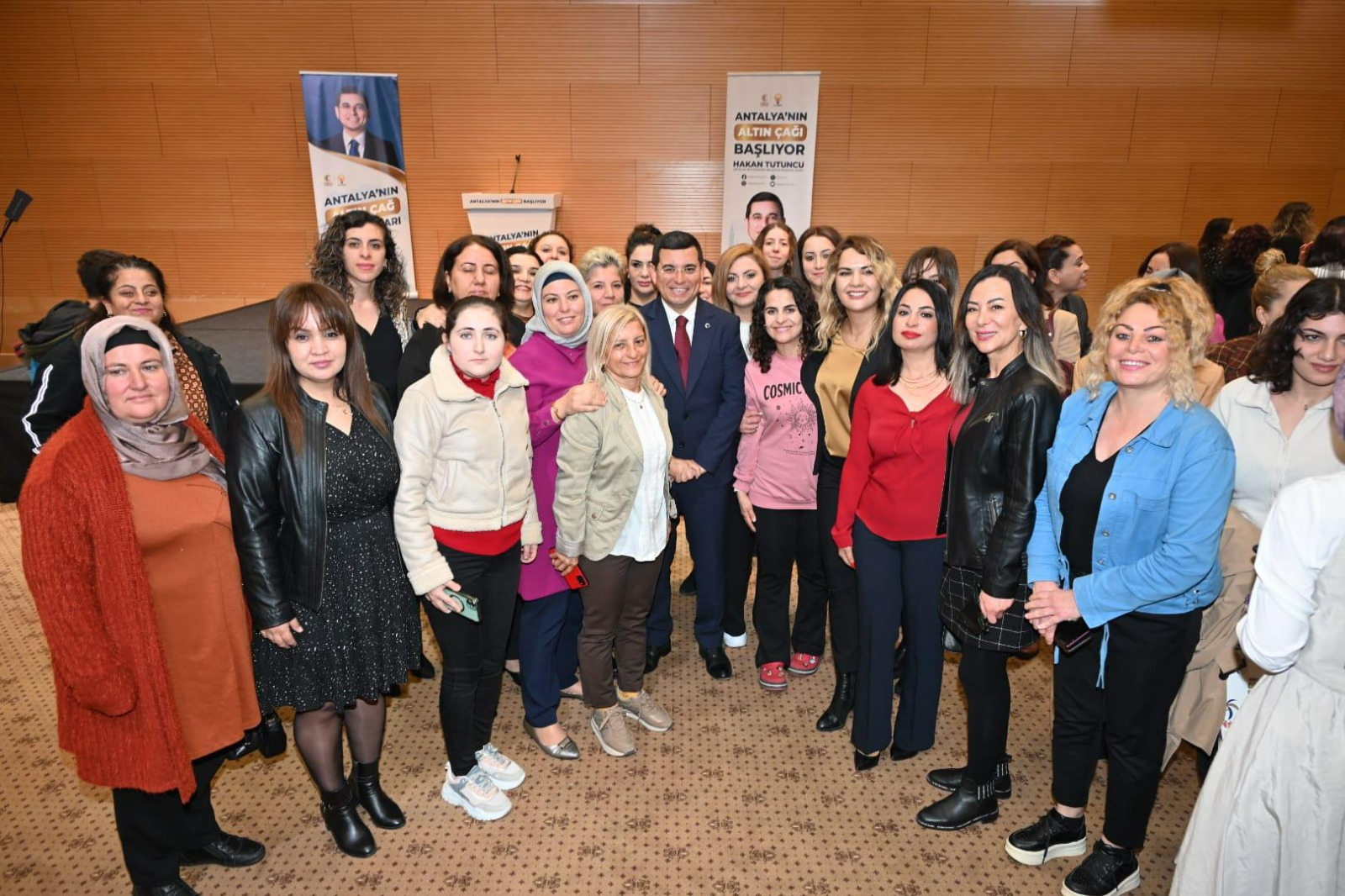 Antalya’nın altın çağında kadınlara yönelik yapılacak çalışmalara da değinen Tütüncü, “İşte yepyeni bir dönemin arifesinde şehre kadın elinin daha güçlü değeceği bir mekanizmayı oluşturmak ve bu mekanizmadan elde edilecek verimi de, şehre bir vizyon olarak armağan etme niyetindeyiz. Kepez’de olduğu gibi, 1 Nisan’dan itibaren bunu siz değerli hanımefendilerle birlikte yapacağız” diyerek sözlerini tamamladı.