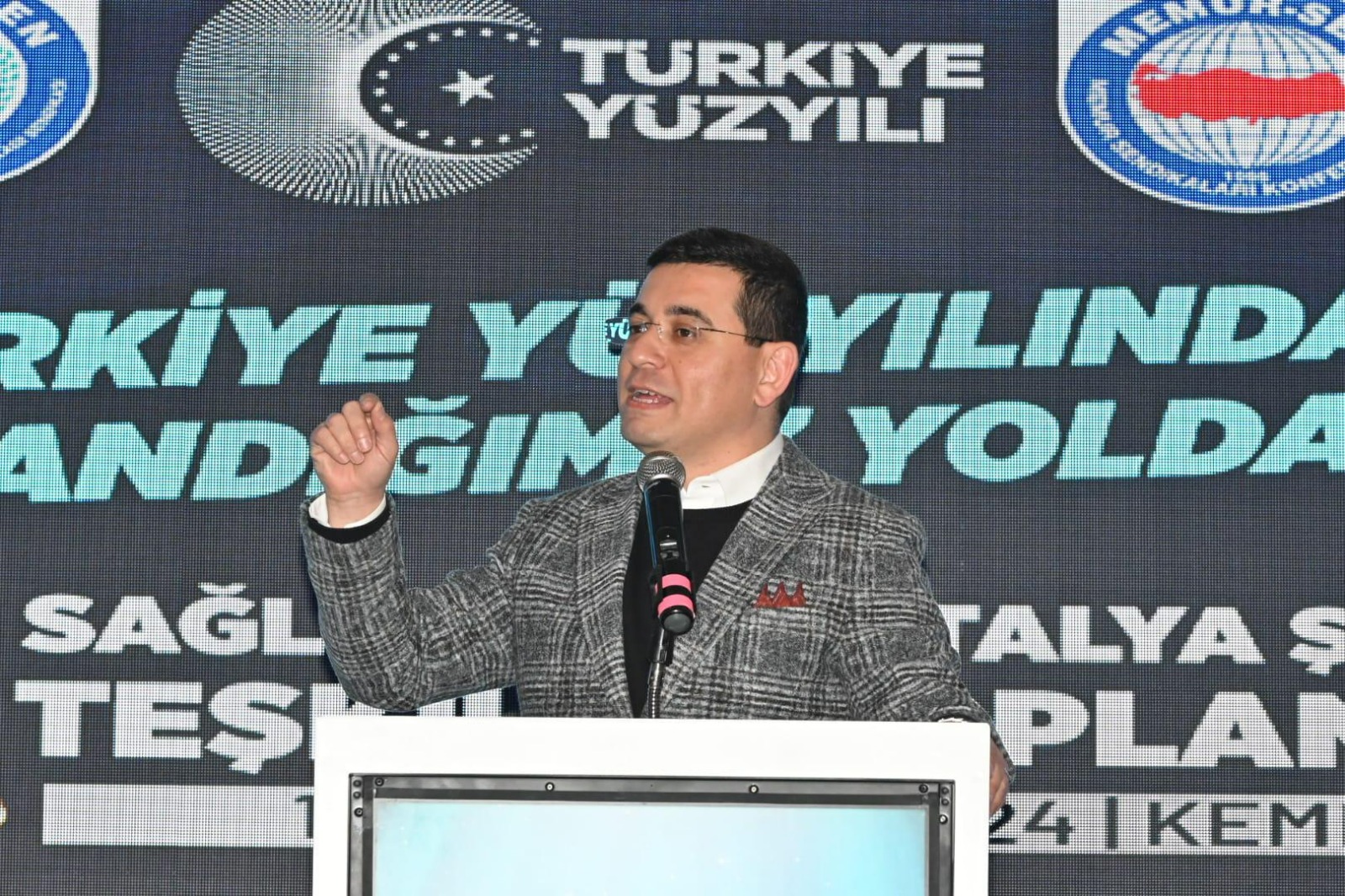 “Biz 15 yıllık görev sürecimizde hep sağlık çalışanlarımızın yanında olduk. Hayatın her anında sizlerle birlikte olmayı, sağlık çalışanlarımızla geleceğe bakmayı, ufka bakmayı yarınlara doğru yol almayı önemli bir ilke olarak kabul ettik. Özellikle pandemi döneminde sosyal tesislerimizi sağlık çalışanlarımıza açmak suretiyle, hem de bir takım ilave tedbirlerle sağlık çalışanlarımızın yanında olduk ve olmaya da devam edeceğiz. 2009 yılında göreve geldiğimiz Kepez’de bir tek sağlık kuruluşu vardı. Bugün geldiğimiz noktada 4 özel olmak üzere 15 hastane, kamu sağlık tesisinin olduğu bir Kepez’i hep beraber meydana getirdik. Hukuki görevimiz olmasa da, doktor ve şifa mahallede olsun diye, tam 37 aile sağlığı merkezi yaptık ve hemşehrilerimizin hizmetine sunduk. Şimdi 4 tanesini daha tamamlamak üzereyiz. Dönemimiz sürecinde 41 aile merkezini Kepez’e kazandırmış olacağız. Sağlıkta altın çağını yaşamış bir Kepez’in olduğunu gördüğümüz de sendikamıza ve sağlık çalışanlarımıza en önemli katkılarımızdan bir tanesinin sağlık çalışanlarımıza yeni çalışma alanları üretmek olduğunu ifade etmeliyim.”