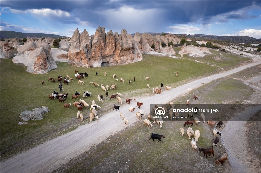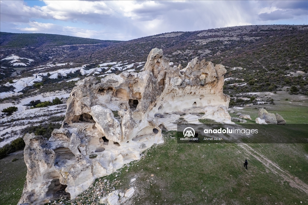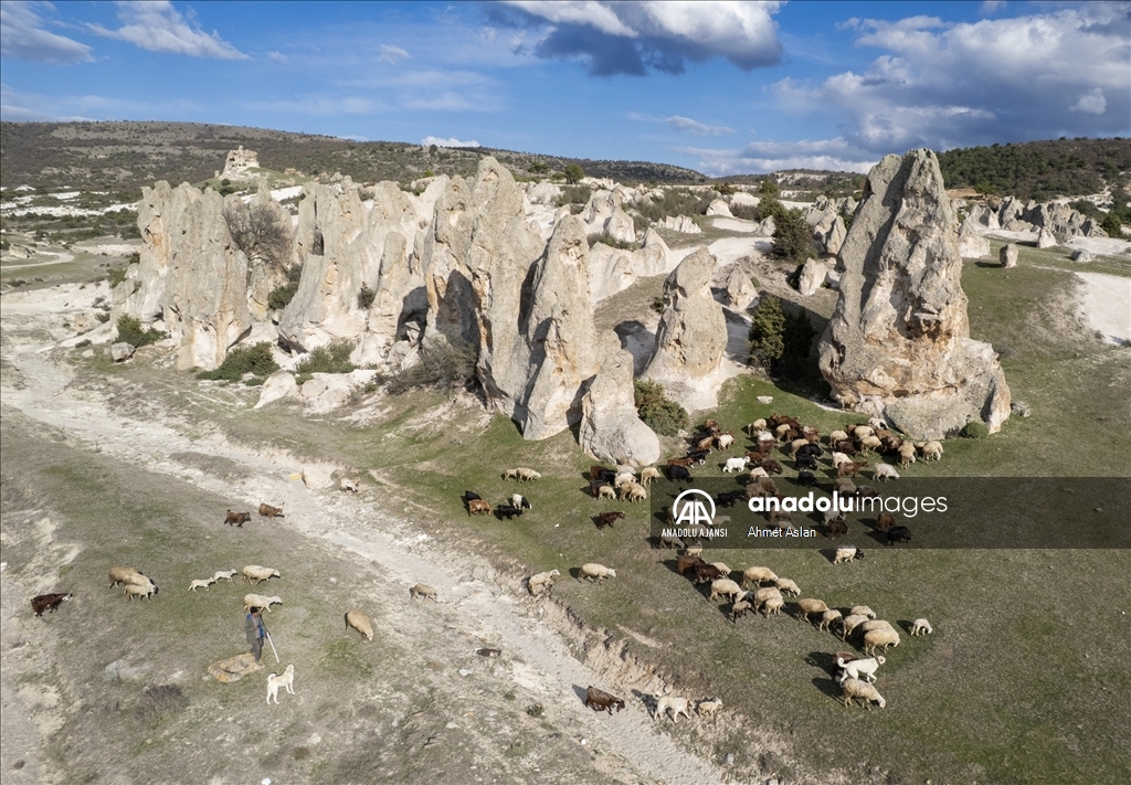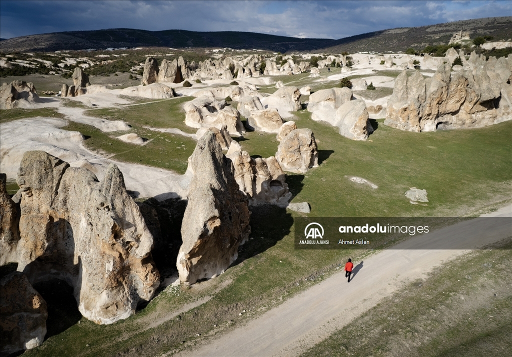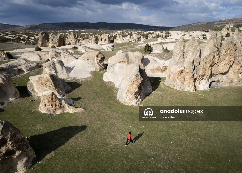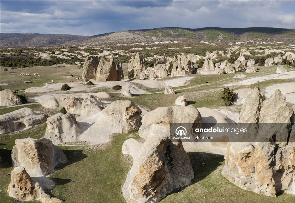 Afyonkarahisar’ın İhsaniye ilçesinde yer alan Döğer Peribacaları, volkanik kayaçlardan oluşan etkileyici yapılarıyla dikkati çekiyor.