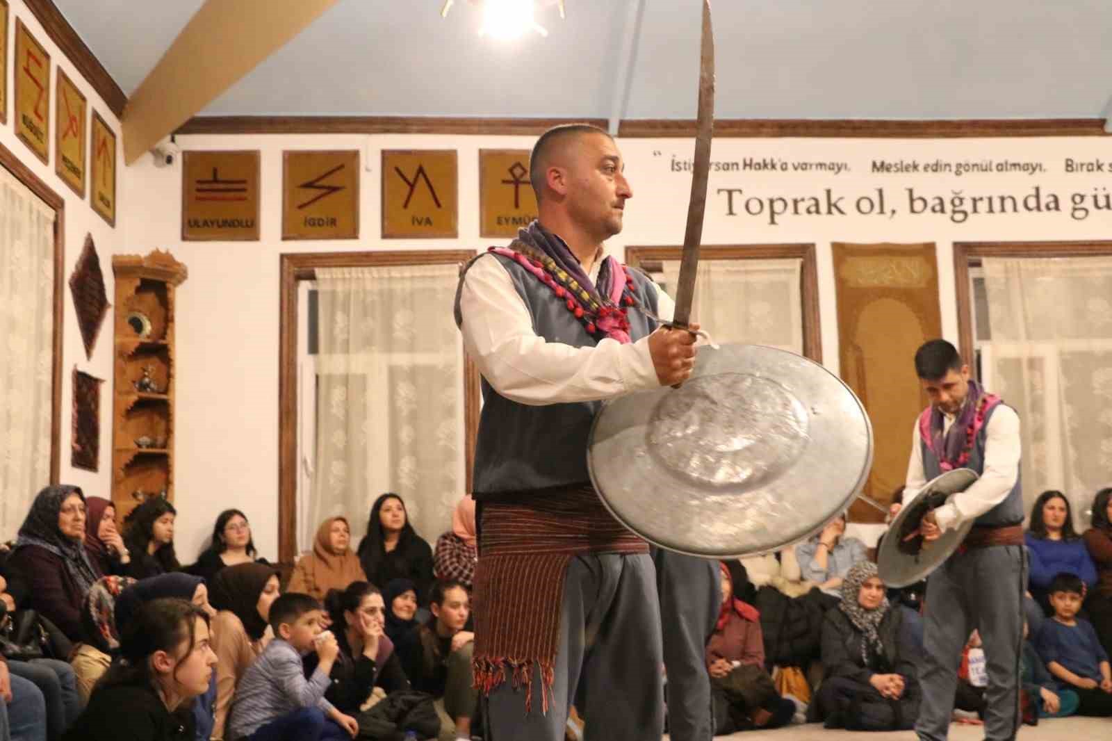 Sandıklı Gardaş Yarenler Kültür Derneği Başkanı Yılmaz Demircan, “Amacımız geçmişten aldığımız kültürümüzü gelecek nesillere aktarmak adına kurulmuş bir derneğiz. Geçmişten aldığımız kültürümüzü derken her birimizin bir mesleği var. Bu mesleğimizin dışında gönüllü olarak yarenlik işini yapıyoruz. Sandıklı Gardaş Yarenler meclisinde, mahalle ve köy odalarında ki orta oyunları, halk oyunlarını belli bir disiplin ve hiyerarşi içersindi yarenlerimizi yetiştirmek. Sandıklı’mızda eskimiş, unutulmuş kültürlerimizi gün yüzüne çıkarmaktır. Bu anlamda kılıç kalkan, orta oyunları derleyip çocuklarımıza öğretiyoruz” dedi.