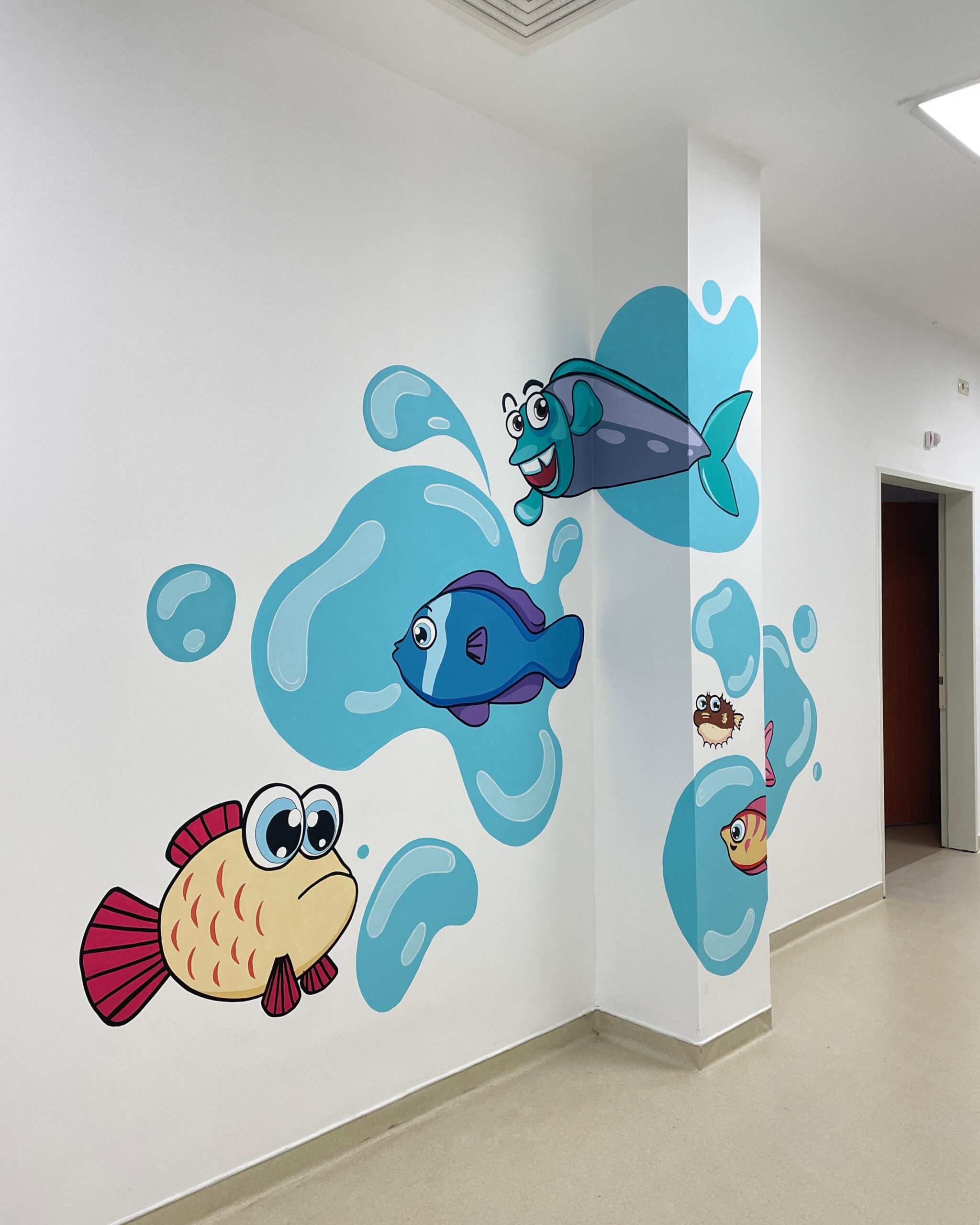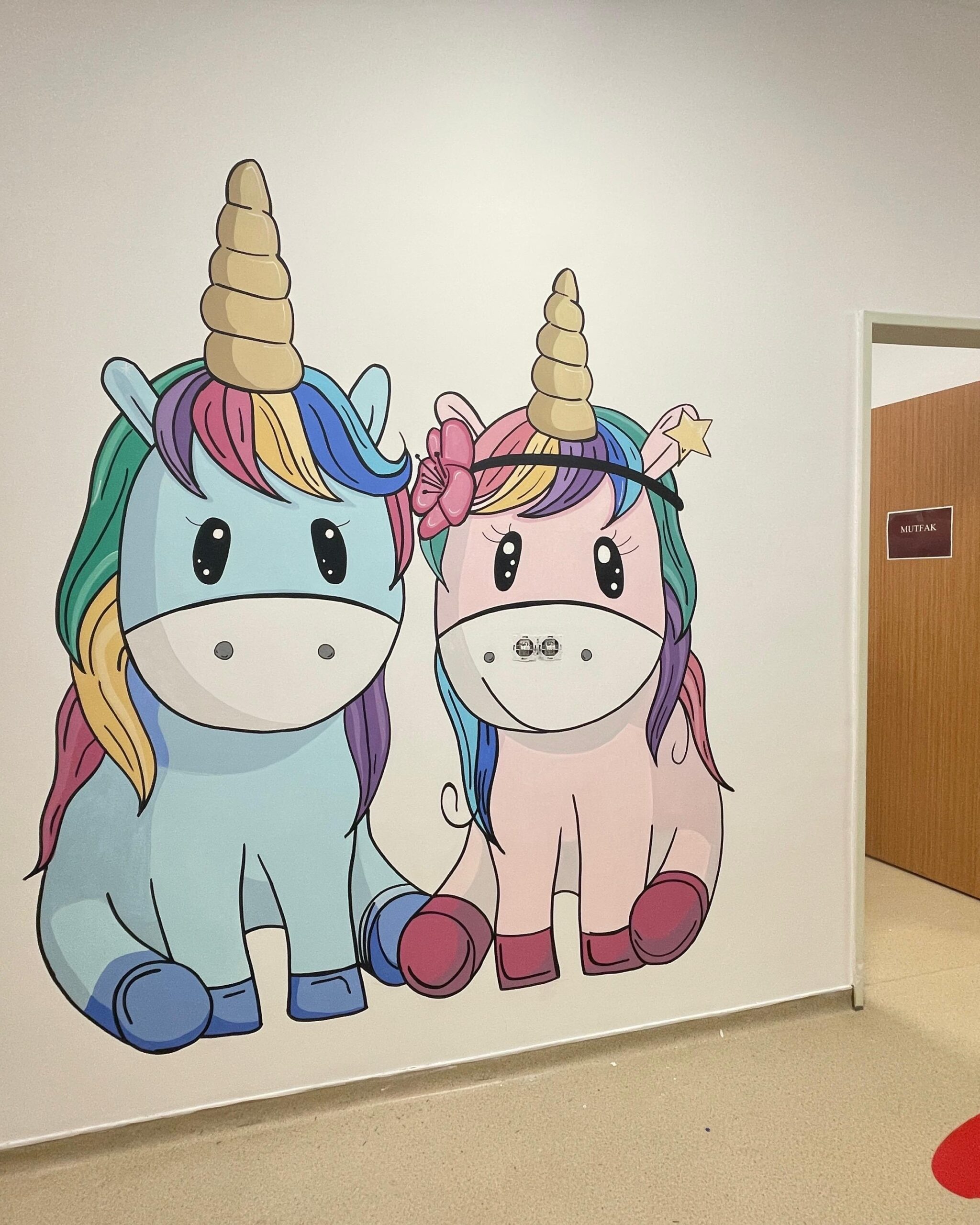 Yürütücülüğünü Bölüm öğretim elemanları Arş. Grv. Dr. Emre Çalış ve Arş. Grv. Dr. Yasemin Kaplan Çalış’ın üstlendiği toplumsal katkı faaliyeti kapsamında akrilik boya ile gerçekleştirilen duvar resimleri, ünitede tedavi gören hastalara moral kaynağı olurken mekâna da estetik bir görünüm kazandırdı. Sanatın iyileştirici gücünden, doğadan ve umut dolu imgelerden ilham alan duvar resimleri, AKÜ GSF lisans öğrencileri Türkan As ve Kadir Eren’in yanı sıra mezunlar Dilan Fırat, Havva Yardım, Şevval Uysal, Mustafa Emre Türker ve Hasiyne Ayhan tarafından hayata geçirildi.>>>Haber Merkezi