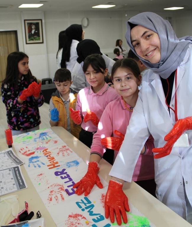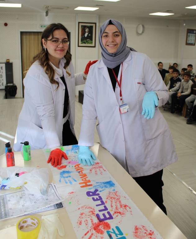 AFSÜ Sağlık Bilimleri Fakültesi Çocuk Sağlığı ve Hastalıkları Hemşireliği Ana Bilim Dalı Başkanı Dr. Öğr. Üyesi Hamide Nur Çevik Özdemir danışmanlığında başlatılan sosyal sorumluluk projesi kapsamında hemşirelik kulübü öğrencileri tarafından ilkokul ve ortaokul öğrencilerine el hijyeninin önemi anlatılarak, doğru el yıkama teknikleri uygulamalı olarak gösterildi. Gerçekleştirilen etkinliklerde el hijyeninin hastalıklardan korunmada kritik bir rol oynadığı vurgulanırken, öğrencilerin hijyen alışkanlıklarını geliştirmeye yönelik eğlenceli ve öğretici interaktif sunumlar, el yıkama yarışmaları ve hijyen konulu boyama etkinlikleri de düzenlendi.