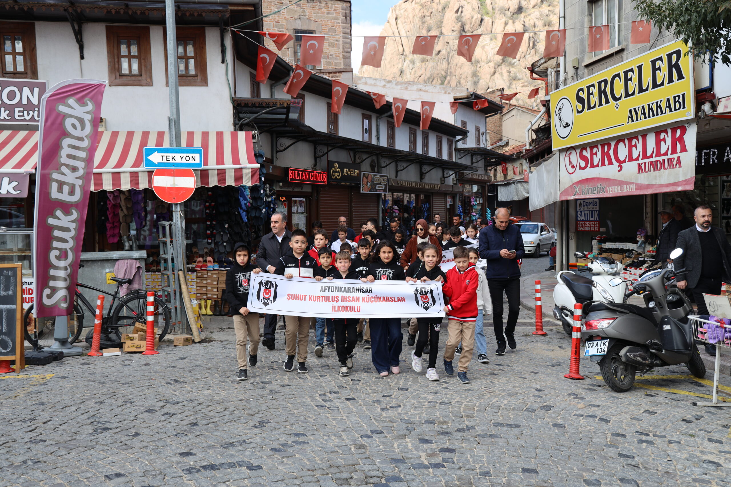 Başkan Genç, “BJK Genel Kurul Üyeleri Dostluk Grubu, İstanbul Ticaret Odası (İTO) BJK Genel Kurul Üyeleri, Perpa Kartalları Beşiktaşlılar Platformu, İstanbul’da başlattıkları öğrencilere Beşiktaşlılık sevgisini aşılama faaliyetlerine ilimizde de devam etti. Bu çerçevede Süleyman Seba Sokak’taki dernek binamızda İstanbul’dan gelen heyetin belirlediği Şuhut Kurtuluş İhsan Küçükarslan İlkokulu ve Ortaokulu öğrencilerine Beşiktaş formalarını teslim ettik” dedi.