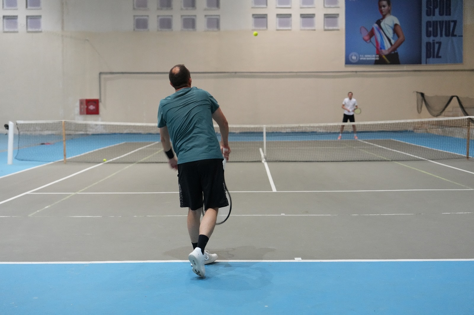 Gençlik ve Spor İl Müdürlüğü tenis kortlarında düzenlenen erkekler kort tenisi müsabakaları da büyük heyecan yaratıyor. ATSO üyeleri ve kurum temsilcilerinin katılımıyla gerçekleştirilen turnuvada sporcular, centilmence mücadele ederek izleyenlere keyifli anlar yaşatıyor. oynanacak yarı final karşılaşmalarıyla finale yükselen sporcular belli olacak.