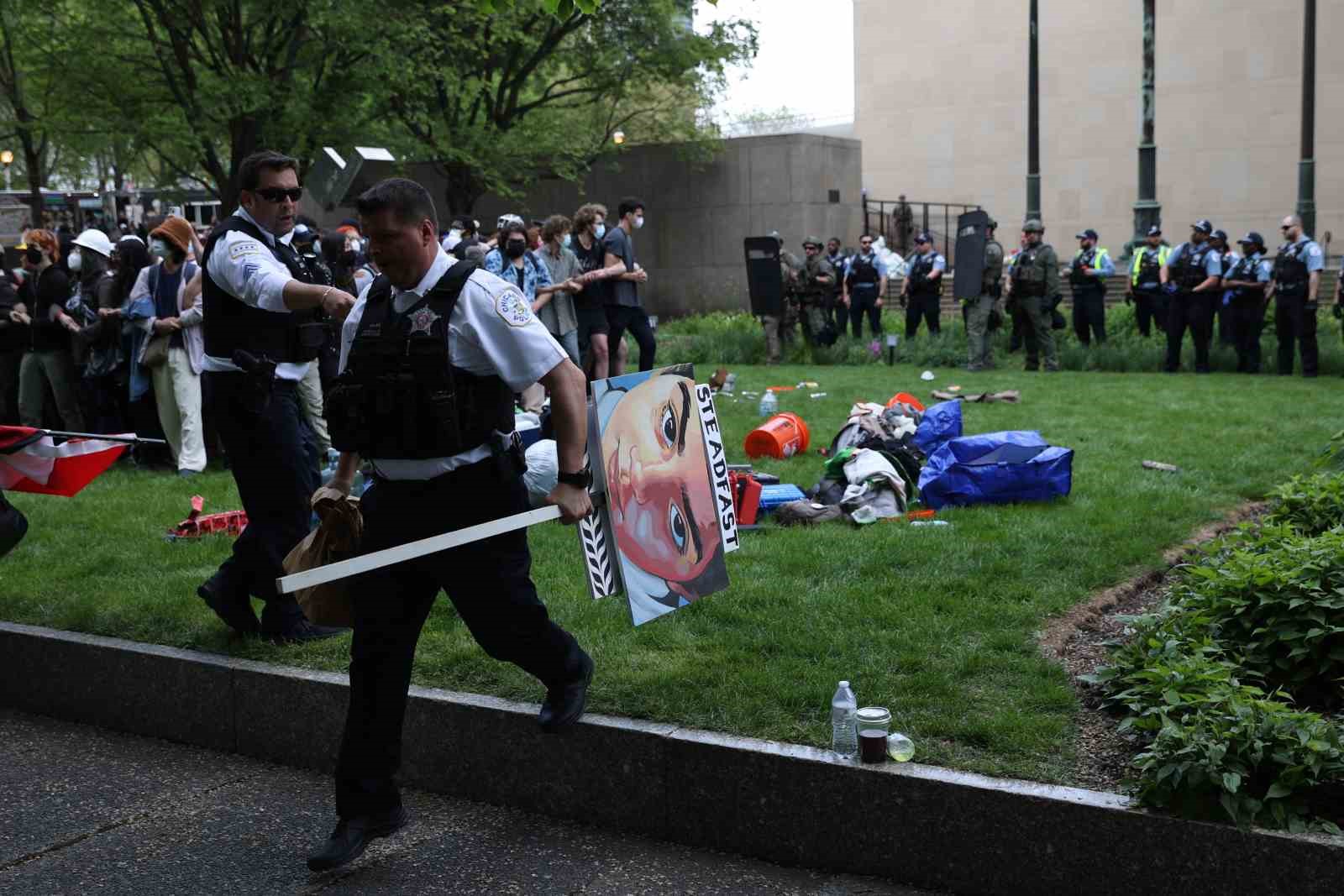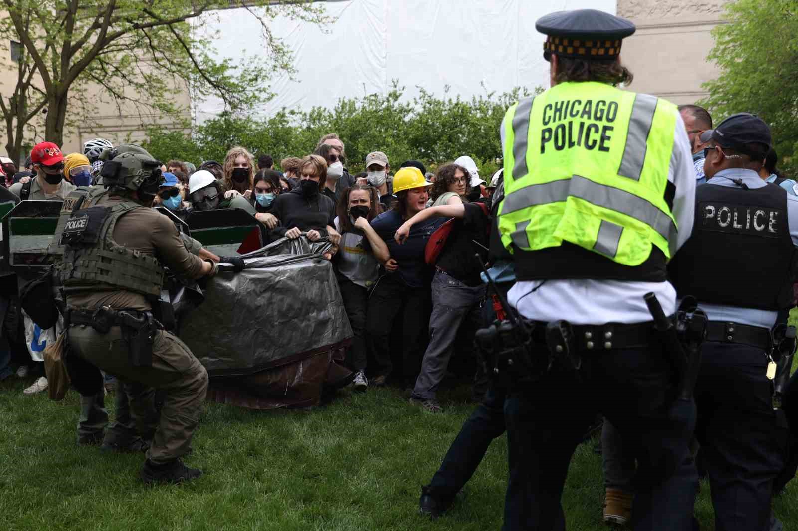ABD’deki üniversitelerde Filistin’e destek gösterileri devam ederken Chicago Sanat Enstitüsü Okulu öğrencileri tarafından kurulan çadır kampa müdahale eden polis, 68 kişiyi gözaltına aldı.