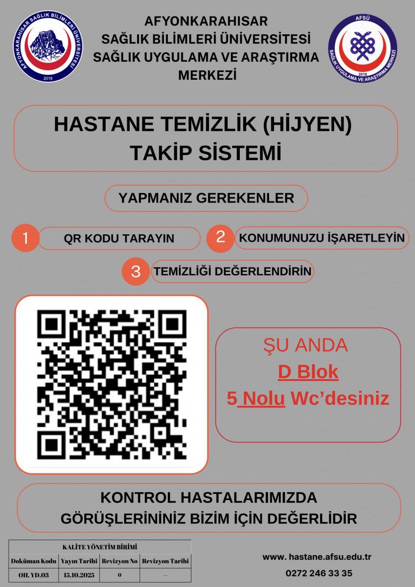 AFSÜ Hastanesinde, karekod (QR) destekli “İstek ve Şikâyet Bildirim Sistemi” ile “Tuvalet Temizliği Değerlendirme Sistemi” kullanıma sunuldu.