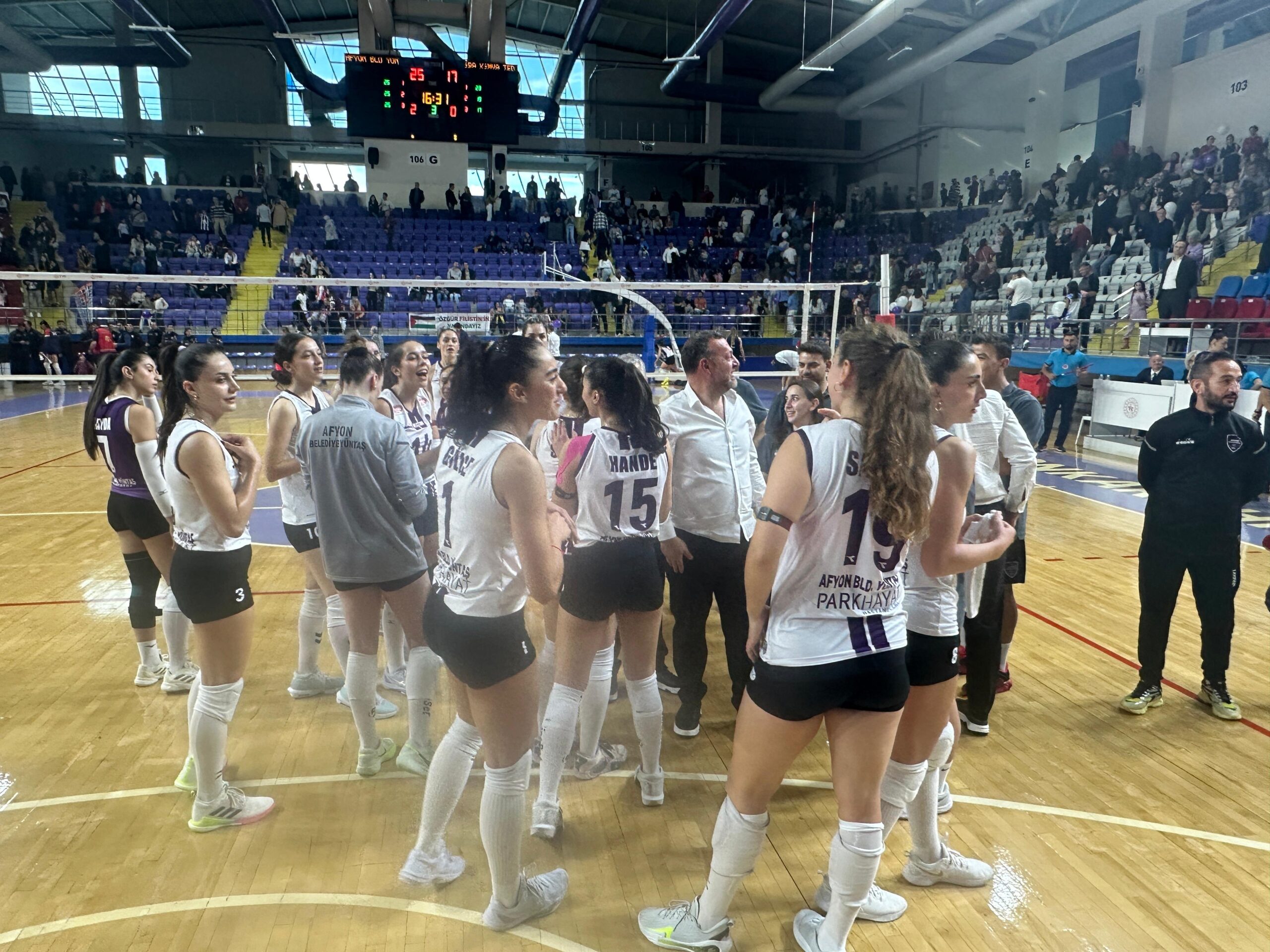 Afyon ekibi, mücadele boyunca oyunun kontrolünü elinde tutarak setleri 25-23, 25-19 ve 25-17’lik skorlarla kazandı.