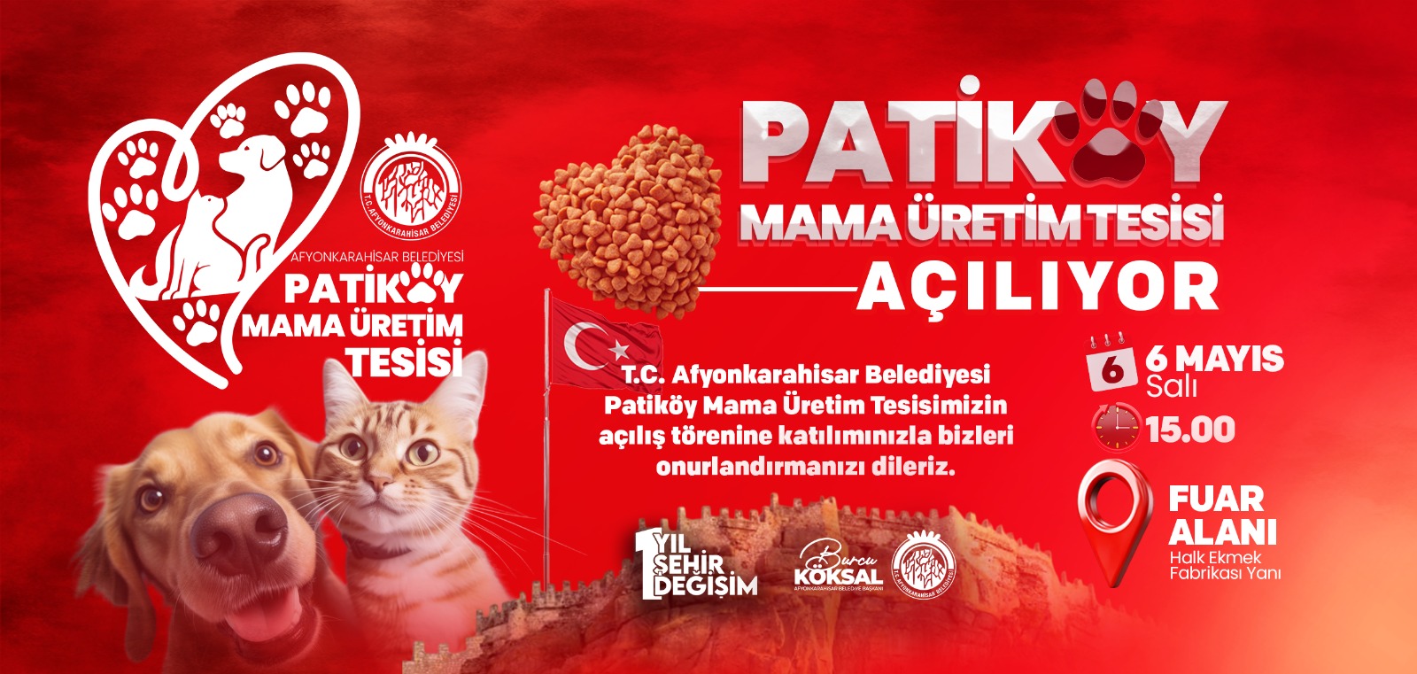 Fuar Alanı’nda, Halk Ekmek Fabrikası’nın yanında kurulacak olan tesis, sokak hayvanlarının beslenme ihtiyaçlarını karşılamak üzere mama üretimi yapacak. Belediye yetkilileri, hayvan dostu bir Afyonkarahisar için tüm vatandaşları açılış törenine davet etti.