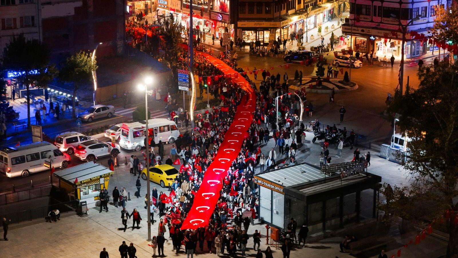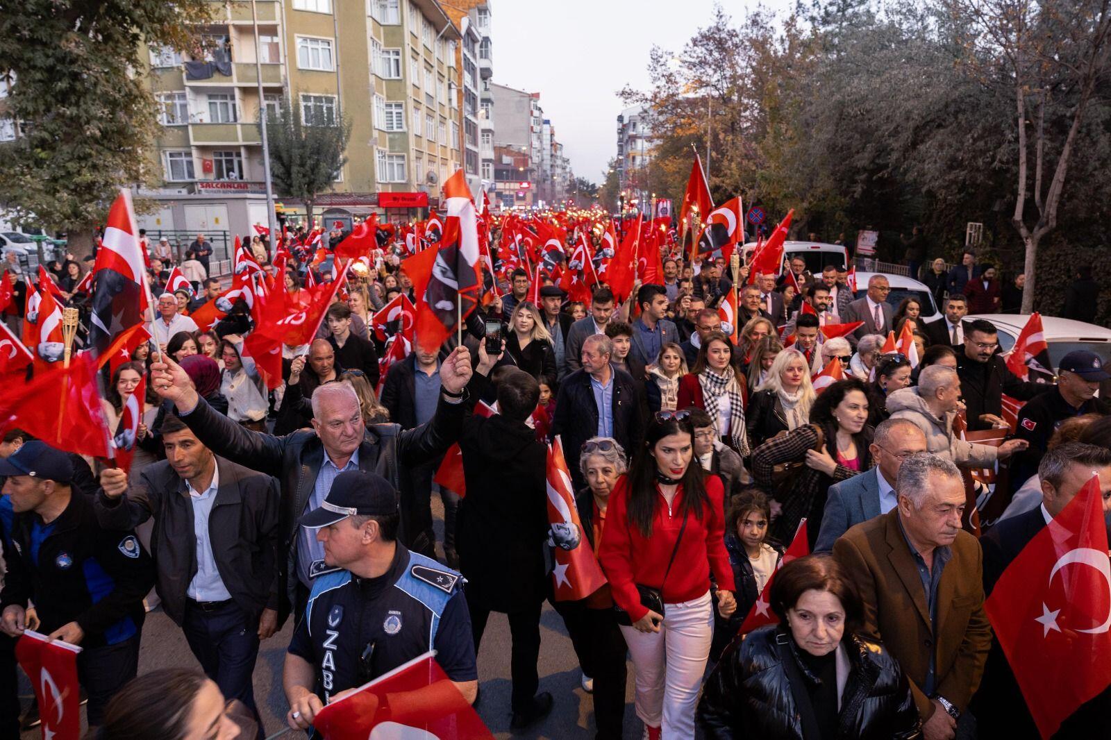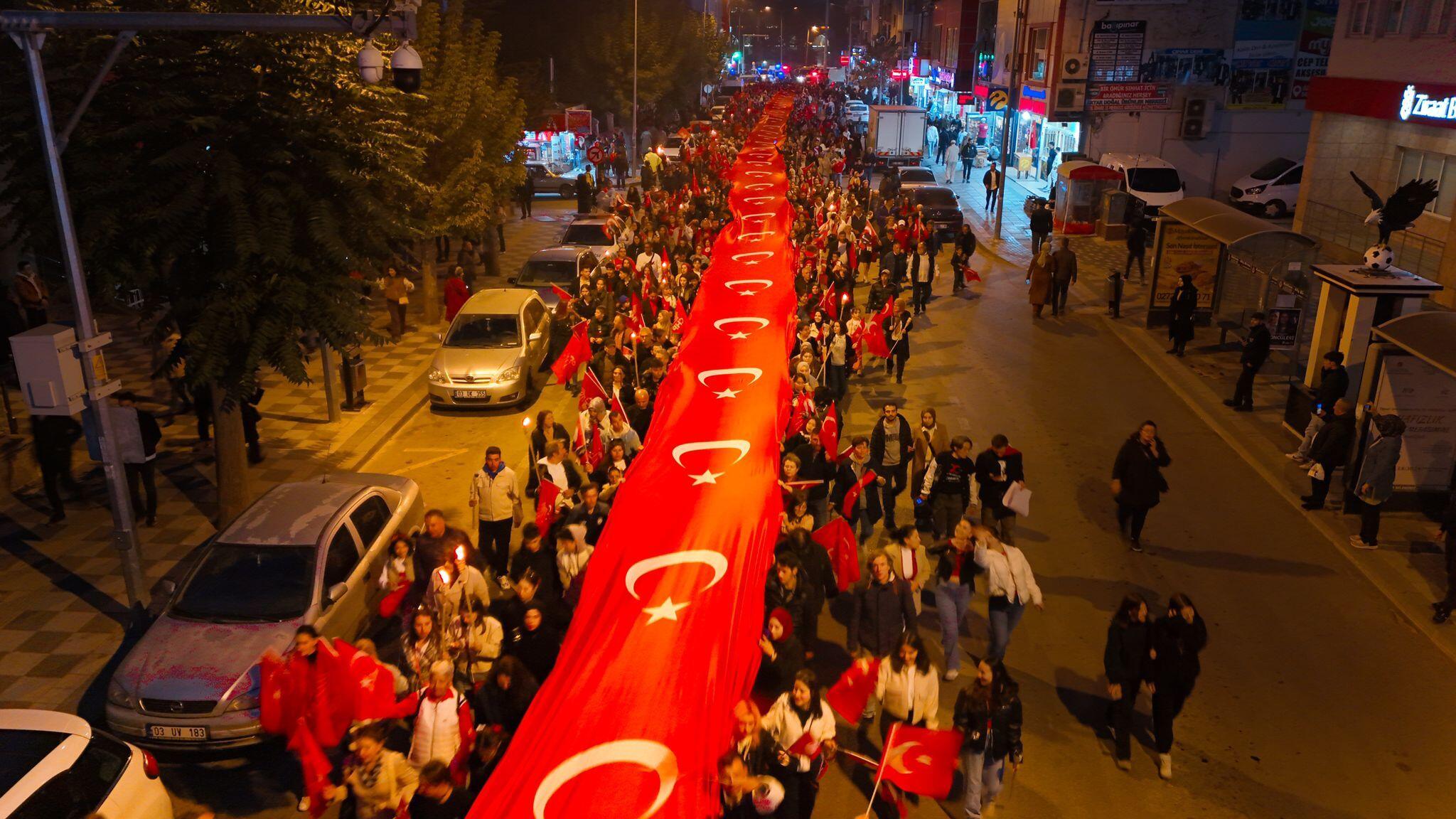 Afyonkarahisar’da Cumhuriyet’in kuruluşunun 101. yılı dolayısıyla Afyonkarahisar Belediye Başkanlığınca Fener Alayı düzenlendi. Kurtuluş Caddesi üzerindeki Eski Yoğurt Pazarı kavşağından başlayan Fener Alayı’na, Afyonkarahisar Belediye Başkanı Burcu Köksal, CHP Afyonkarahisar İl Başkanı Faruk Duha Erhan, CHP Afyonkarahisar Merkez İlçe Başkanı Büşra Dişçioğlu, belediye ve il genel meclisi üyeleri, sivil toplum kuruluşları başkan ve temsilcileri ile çok sayıda vatandaş katıldı. Kurtuluş Caddesi üzerinde yürüyüşe geçen kalabalık ellerinde Türk bayrakları ve meşalelerle, dillerinde ise marşlarla ilerledi. Kalabalığın coşkulu sesleriyle, Cumhuriyet değerlerine olan bağlılık ve milletin bağımsızlık azmi bir kez daha gözler önüne serildi. Vatandaşlar, “Gençlik Marşı” ve “İzmir Marşı” gibi Cumhuriyetimiz için özel hazırlanmış marşları hep bir ağızdan söyleyerek yürüyüş boyunca büyük bir birlik ve beraberlik örneği sergiledi. Zaman zaman ‘Mustafa Kemal’in Askerleriyiz’ sloganları atan kalabalık, Zafer Meydanı’na kadar yürüdü.